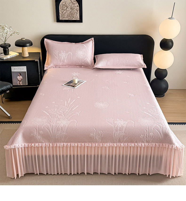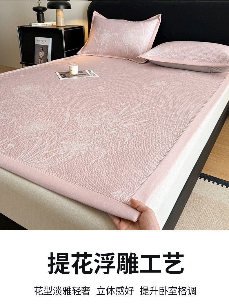 (总)鑫琪莱家纺 2026新款提花浮雕凉豆豆凉感凉席床裙款
