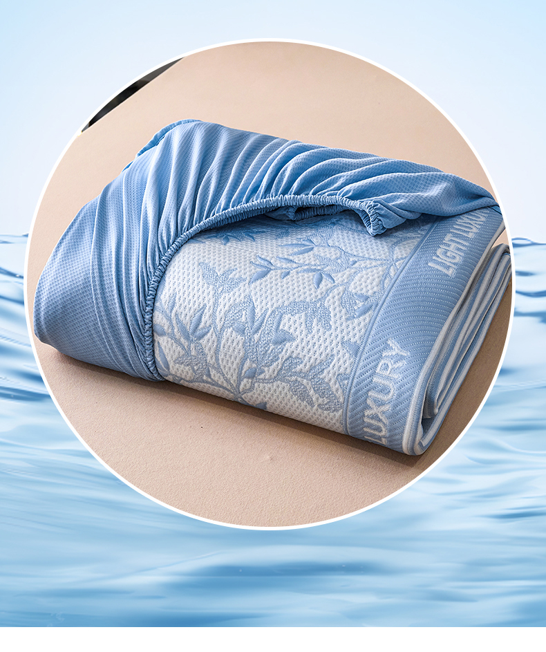 雅诗帛 2026新款提花PE凉感冰丝席三件套 风景-床笠蓝