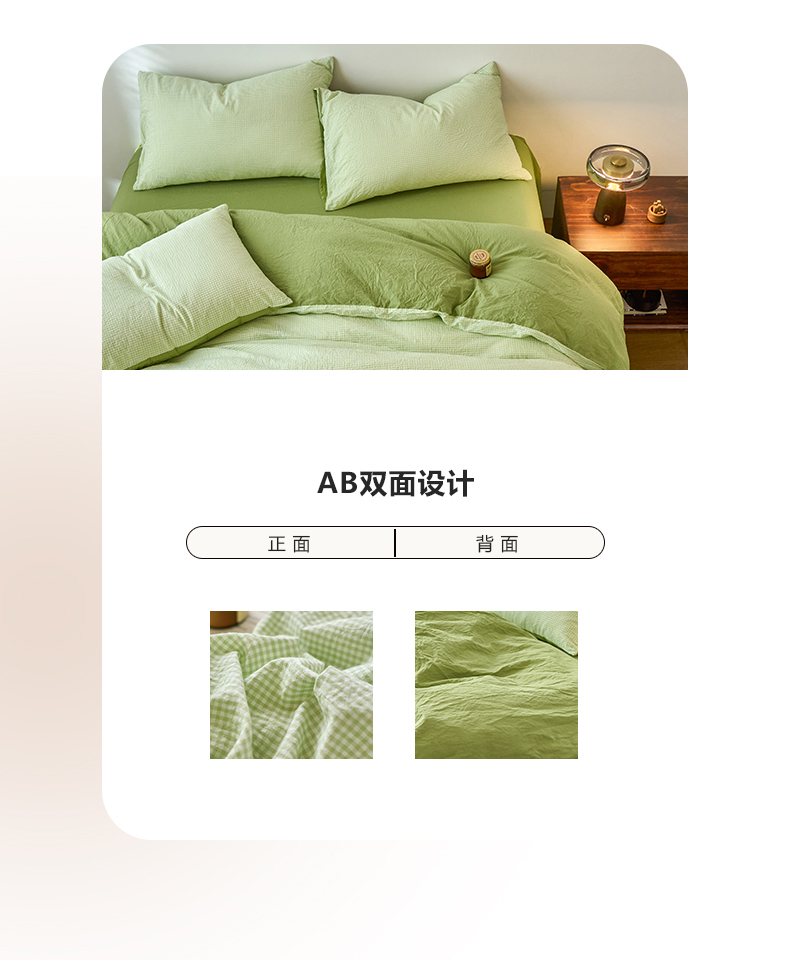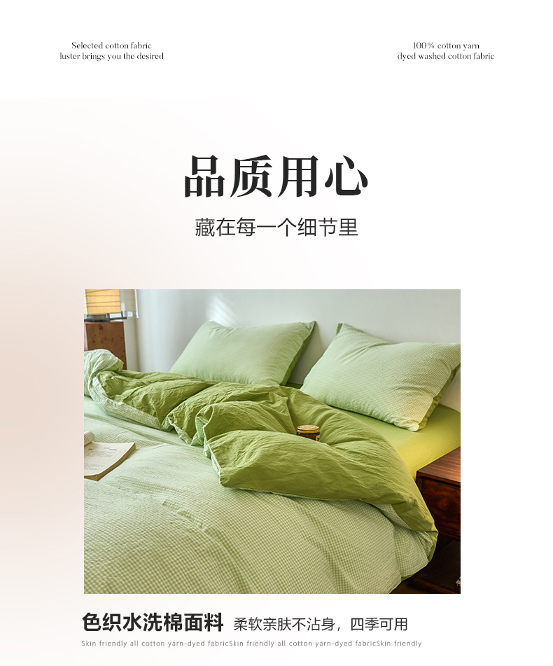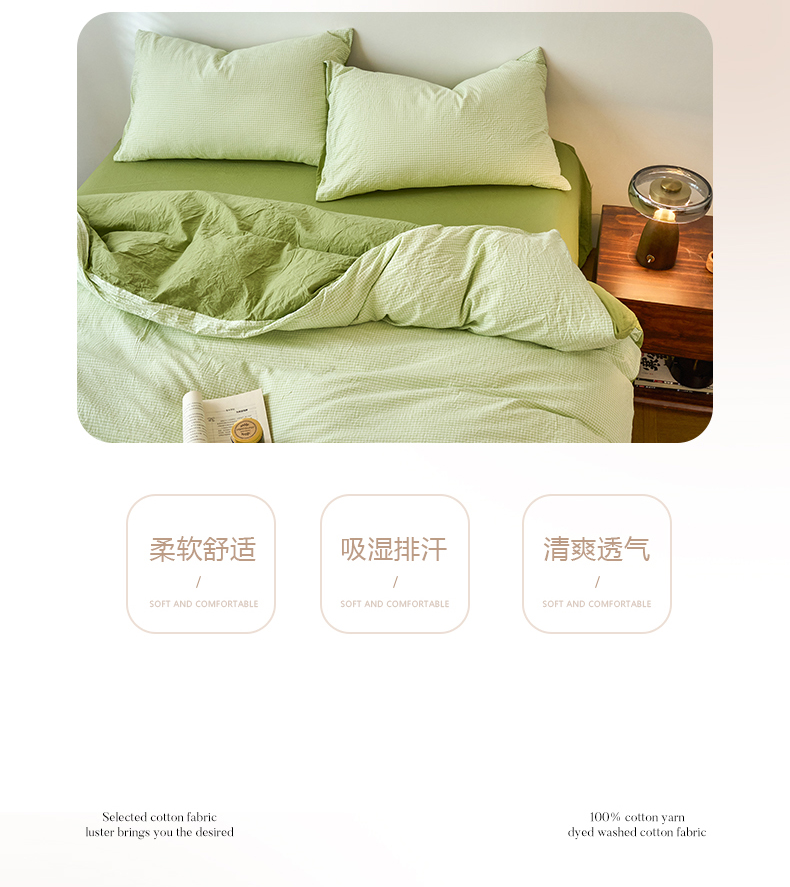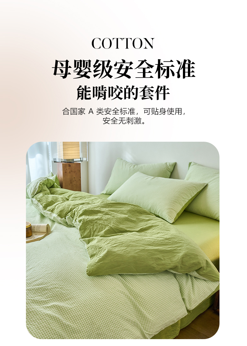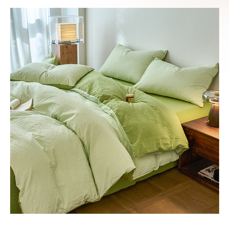 当前位置: 91家纺网 > 商品网购 > 床品套件 > 四件套 > 全棉普通四件套 > 春皖家纺 2026春夏新款全棉纯棉水洗棉四件套 嫩绿格