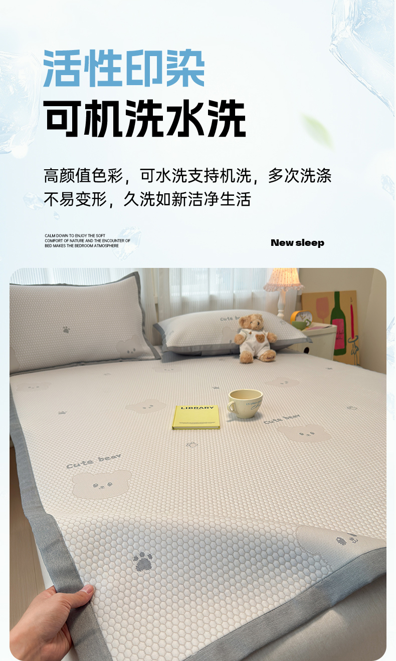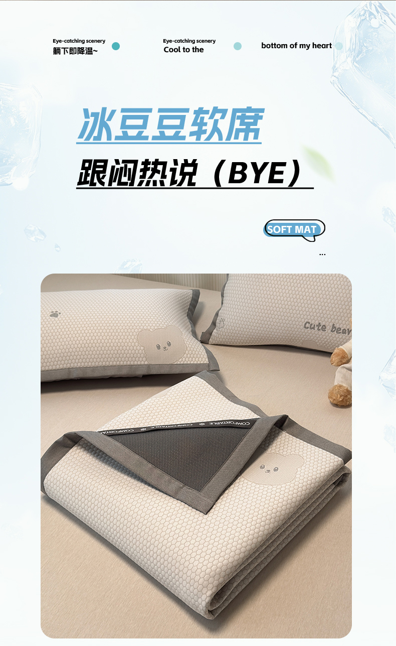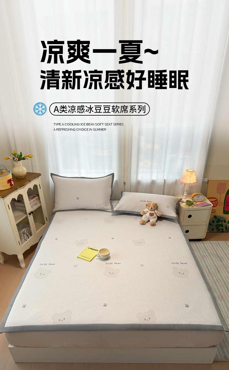 亿梵家居 2026春夏新款冰豆豆PE高分子凉席 比利熊-咖