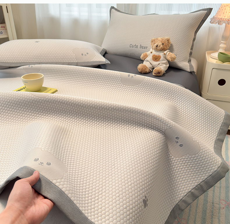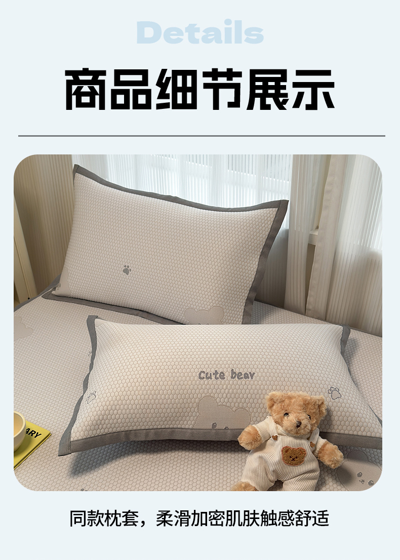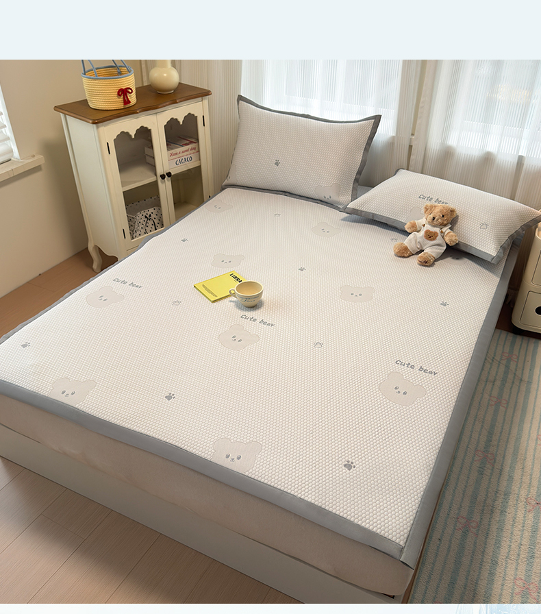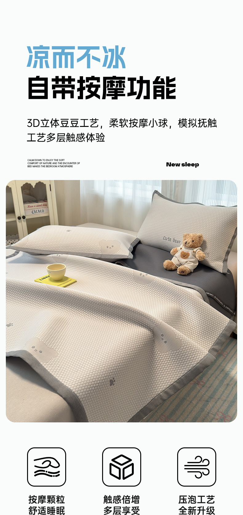 亿梵家居 2026春夏新款冰豆豆PE高分子凉席 比利熊-咖