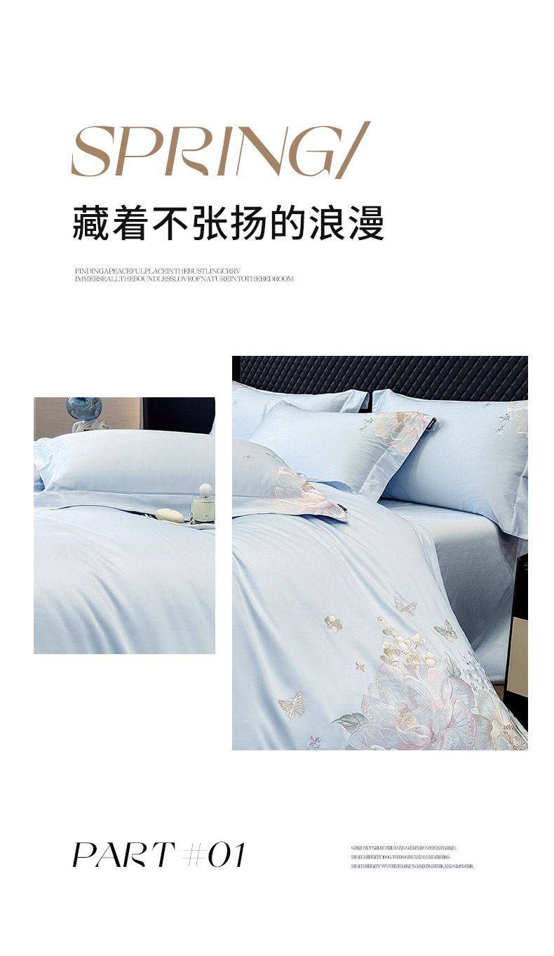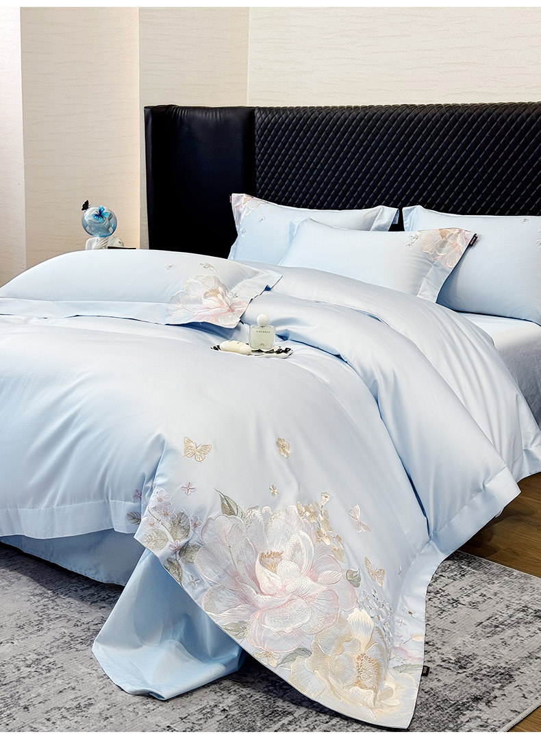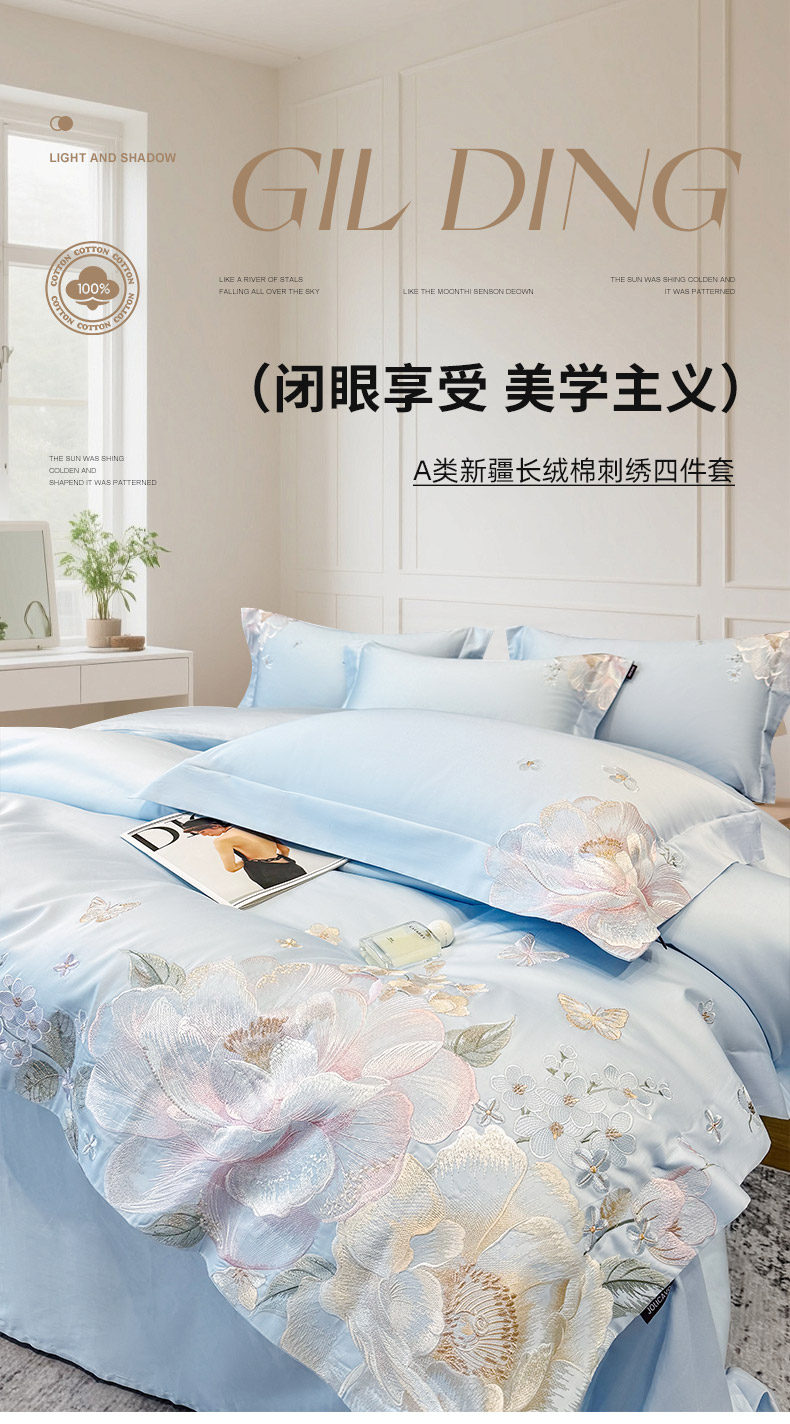 当前位置: 91家纺网 > 商品网购 > 床品套件 > 四件套 > 长绒棉四件套 > 2026新品高档轻奢风100支贡缎长绒棉纯棉四件套全棉重工刺绣被套床单床笠新品四季款床上用品 花影-慕蓝