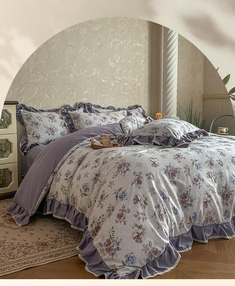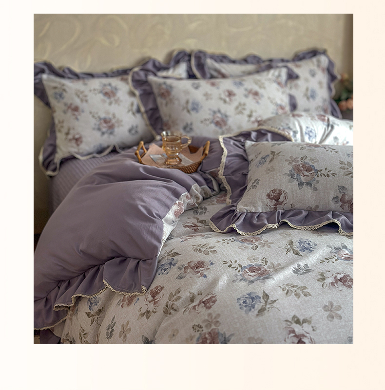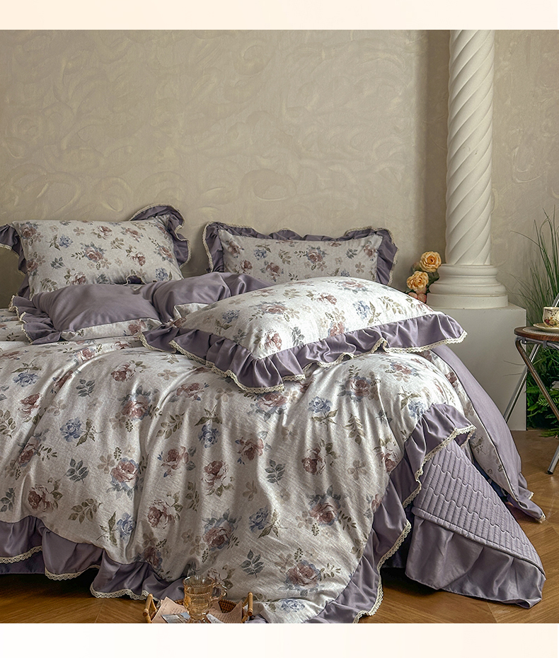 星光耀 2026新款A类高克重斜纹云柔棉床盖四件套 茶礼·远山紫