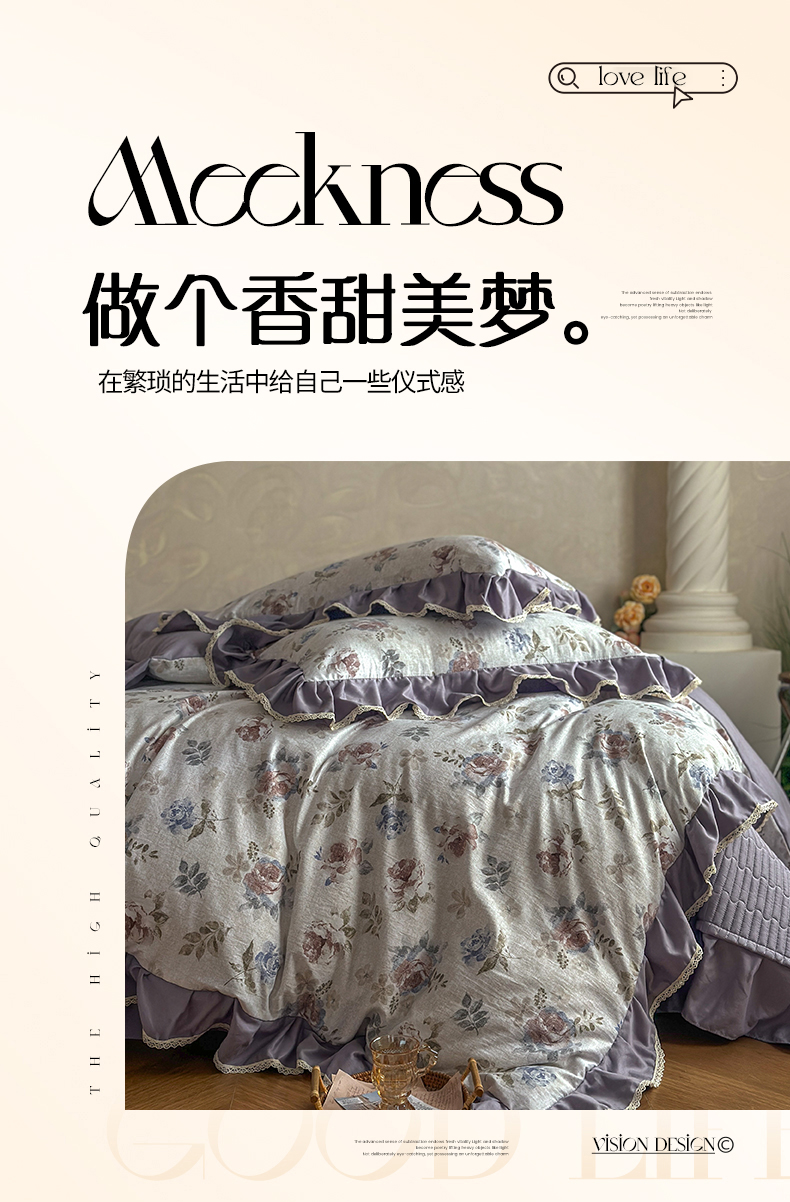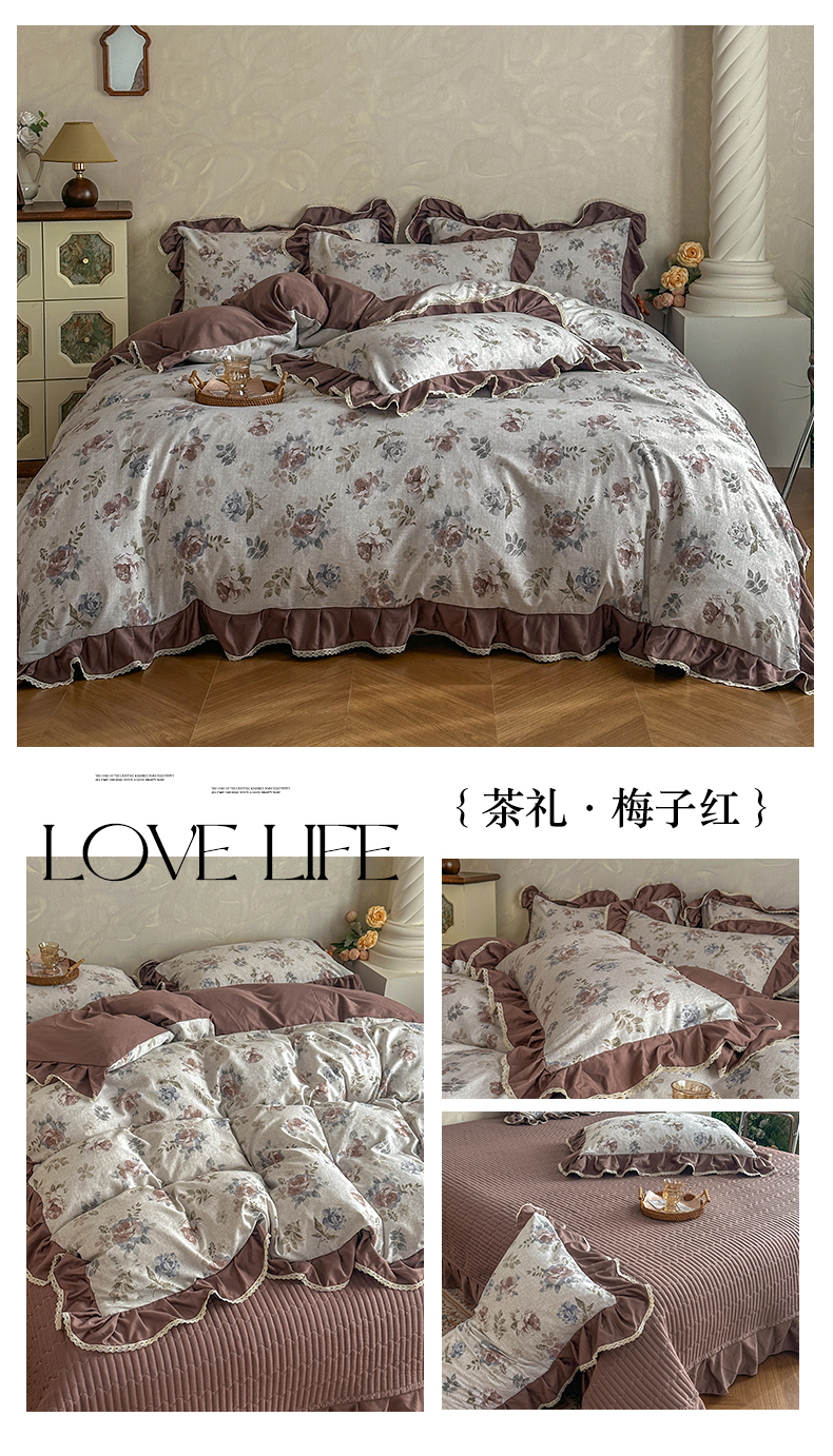 (总)星光耀 2026新款A类高克重斜纹云柔棉床盖四件套,茶礼·远山紫,茶礼·梅子红,边庭,禅弥,花棠,岚语