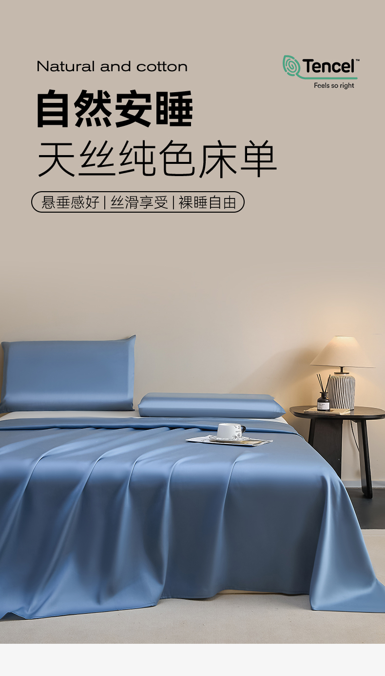 DC 2026新款莱赛尔天丝纯色单品床单 梵高蓝