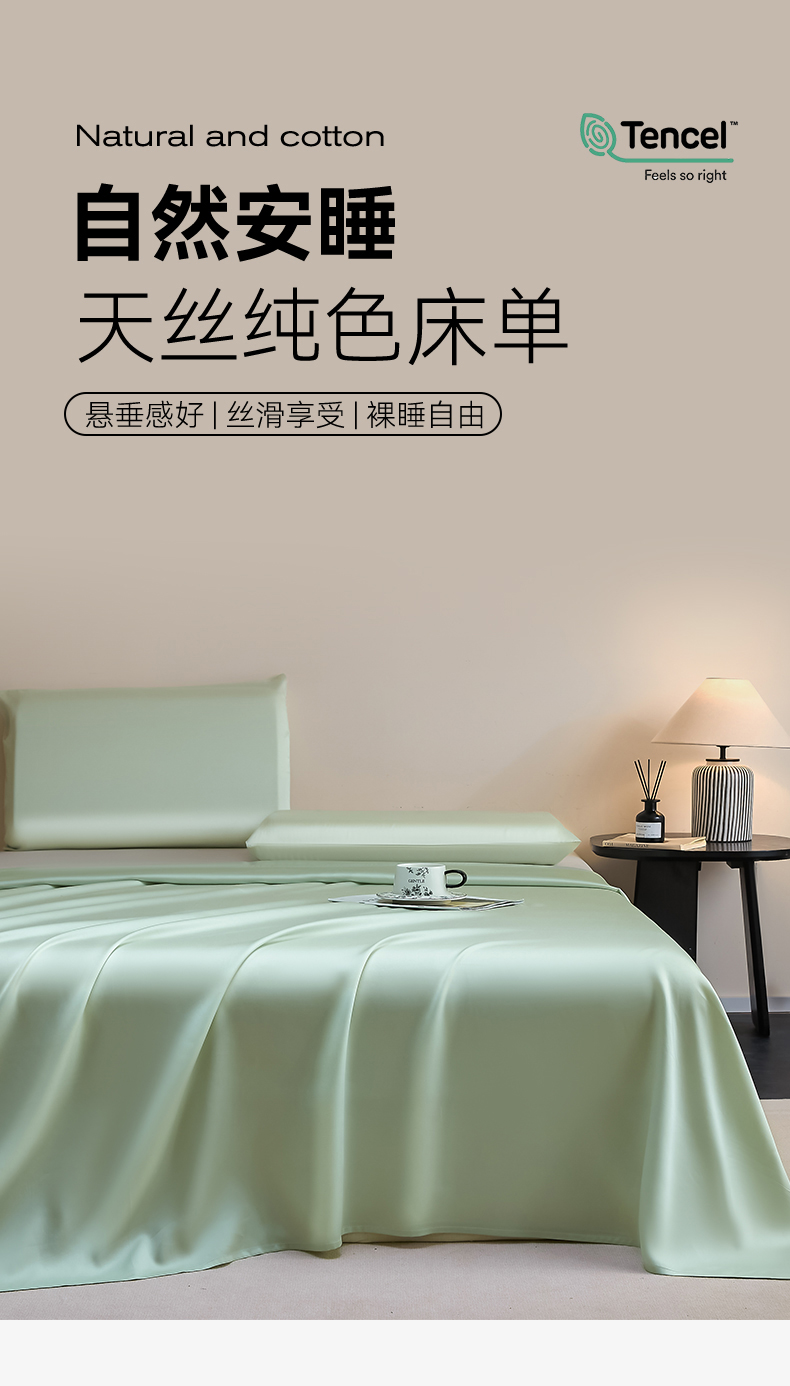 商品名称:DC 2026新款莱赛尔天丝纯色单品床单 亚丁绿