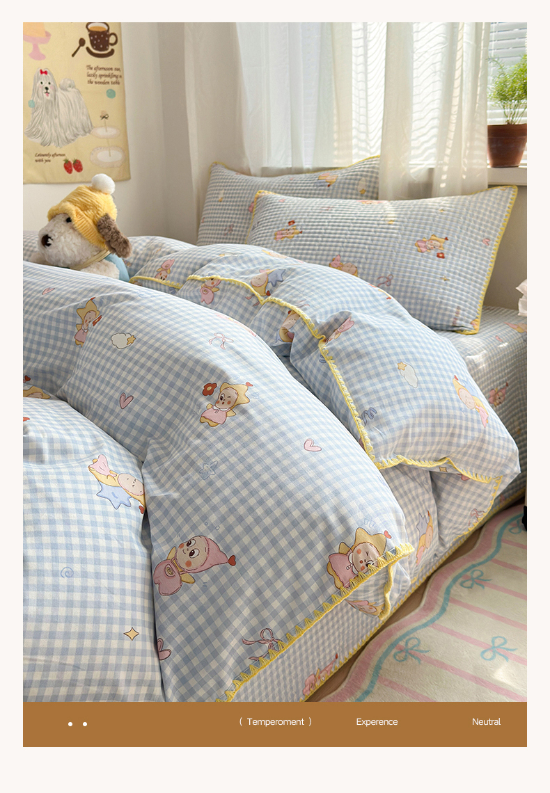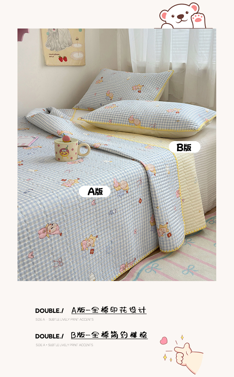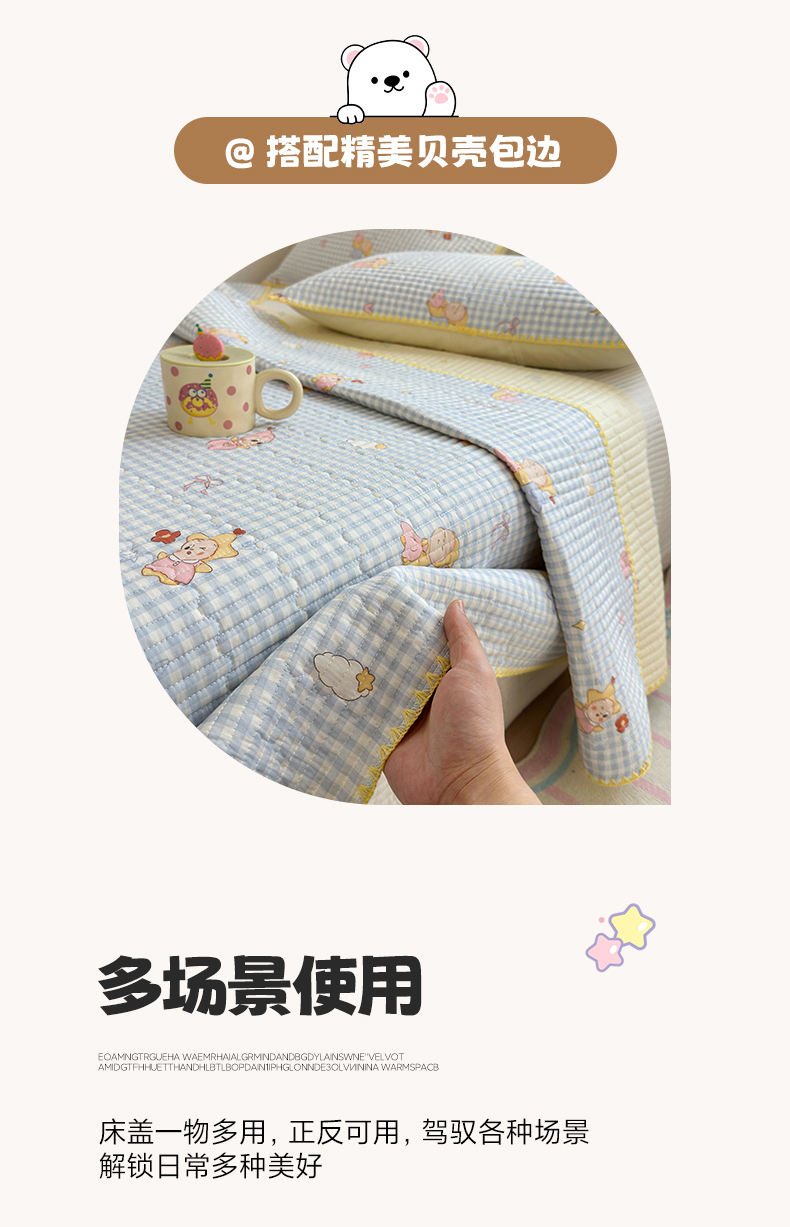 当前位置: 91家纺网 > 商品网购 > 床品套件 > 四件套 > 全棉普通四件套 > 妮可 2026新款贝壳边双面全棉床盖四件套 蓝格星星仔