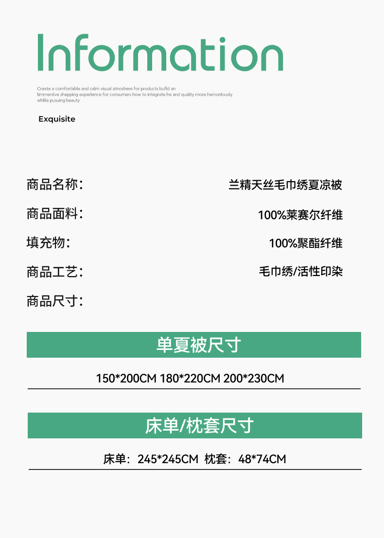 • 适用季节: 空调被/夏凉被