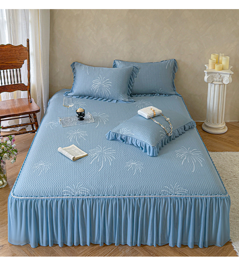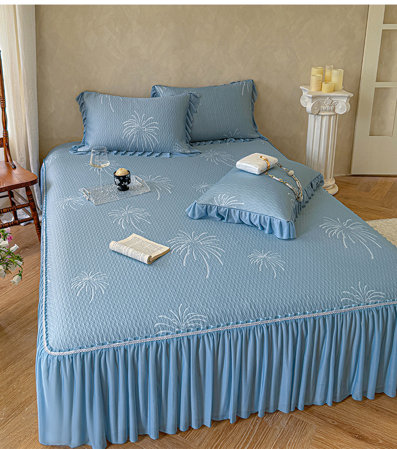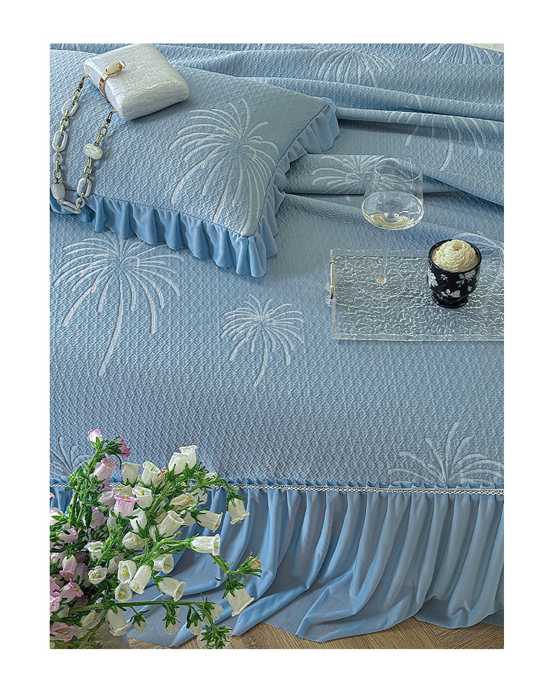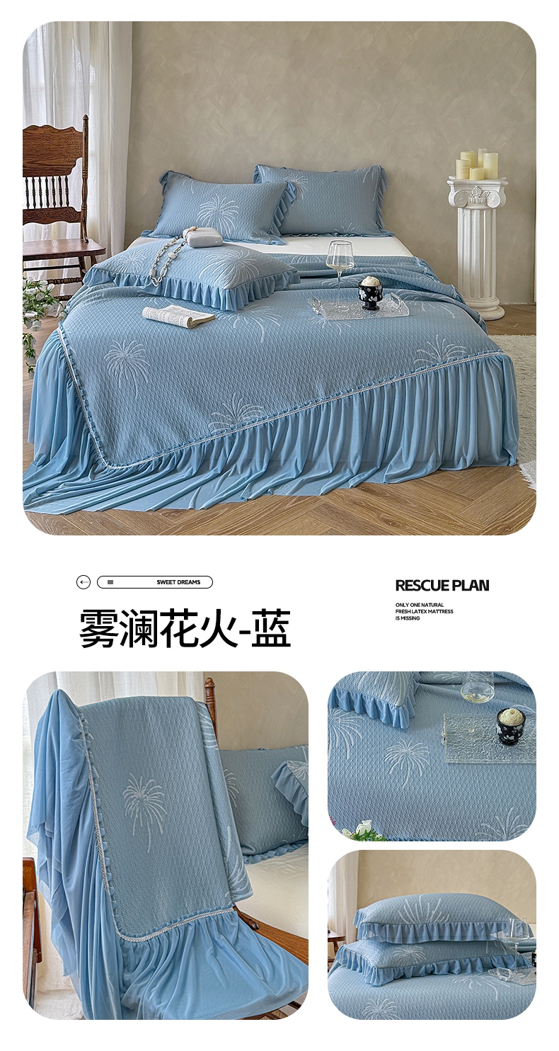 亿品家纺 2026新款550克PE高分子单泡提花凉感复合床裙款凉席 雾澜花火-蓝(不复合)