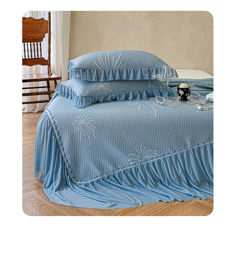 当前位置: 91家纺网 > 商品网购 > 床上用品 > 凉席 > 亿品家纺 2026新款550克PE高分子单泡提花凉感复合床裙款凉席 雾澜花火-蓝(不复合)