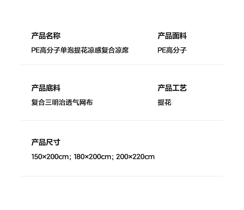180x200cm凉席+枕套一对(不复合)