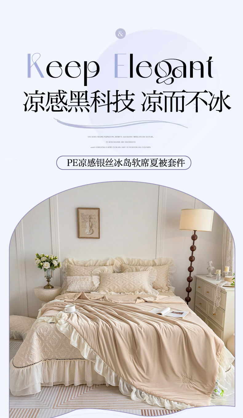 (总)菊上家纺 2026新款PE凉感床裙款凉席夏被夏凉被空调被四件套-清雅之梦,清雅之梦-珍珠白,清雅之梦-抹茶绿,清雅之梦-香芋紫,清雅之梦-樱花粉