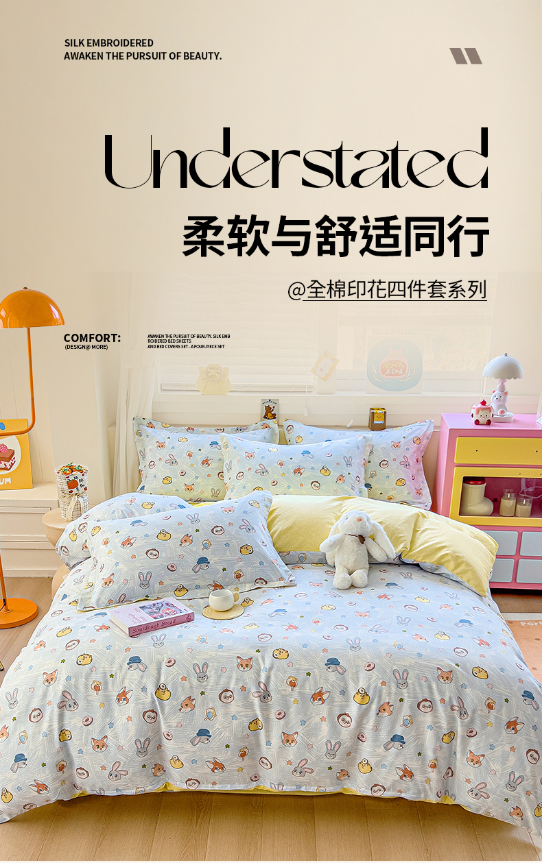 当前位置: 91家纺网 > 商品网购 > 床品套件 > 四件套 > 全棉普通四件套 > 琪琪阁家纺 2026新款加厚全棉纯棉四件套 萌趣星球