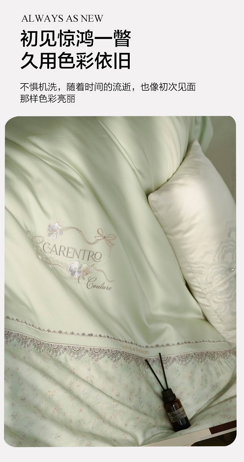 (总)诗黛尔 2026春夏新款 天丝刺绣四件套叶叶生辉系列,清新绿,绅士灰,水晶兰,香槟金,香妃玉,优雅紫