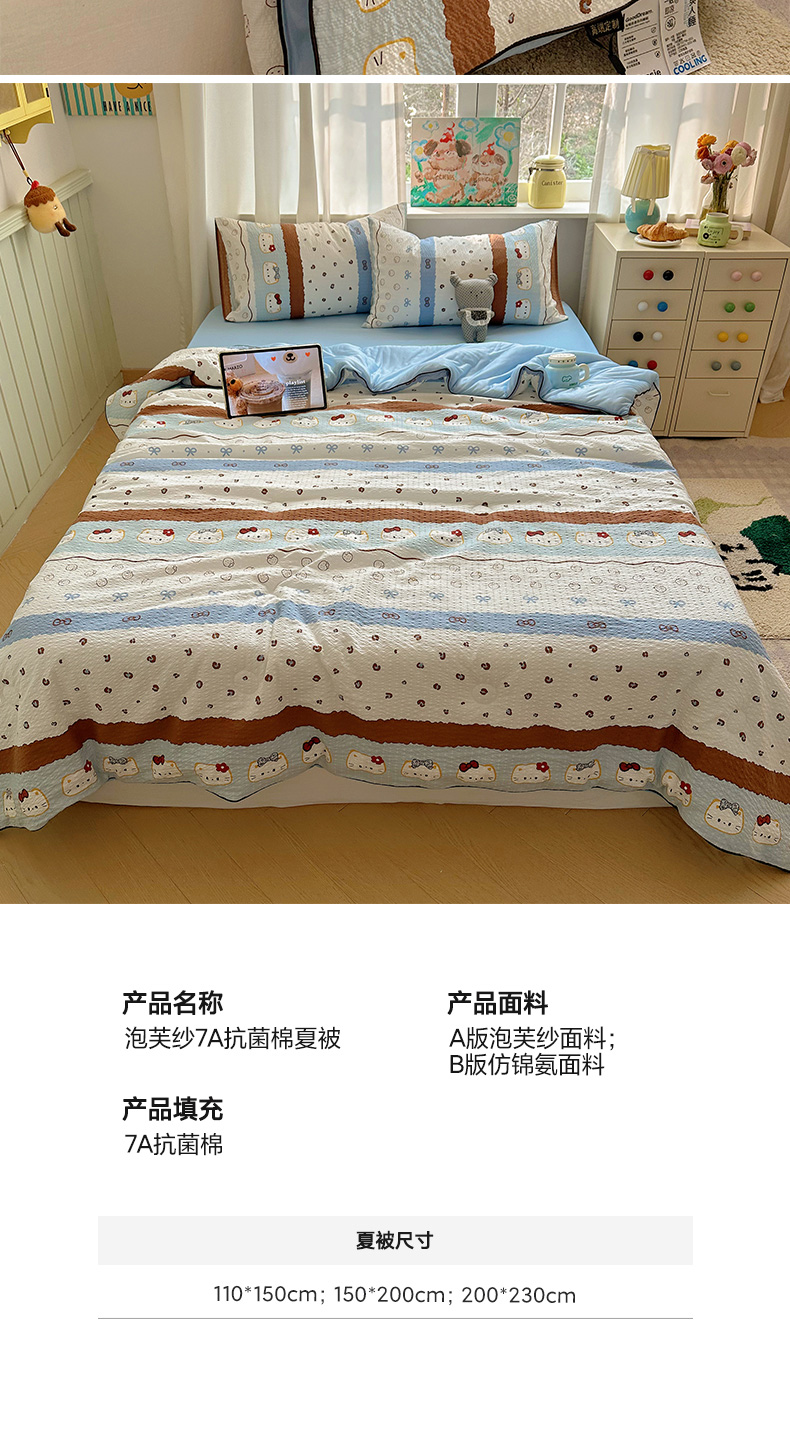 (总)贝扬思家纺 2025新款三丽鸥简约条纹夏被夏凉被空调被套件系列,奶油条kt粉粉,奶油条kt粉黄,奶油条kt黄黄,奶油条kt蓝蓝,奶油条kt紫紫