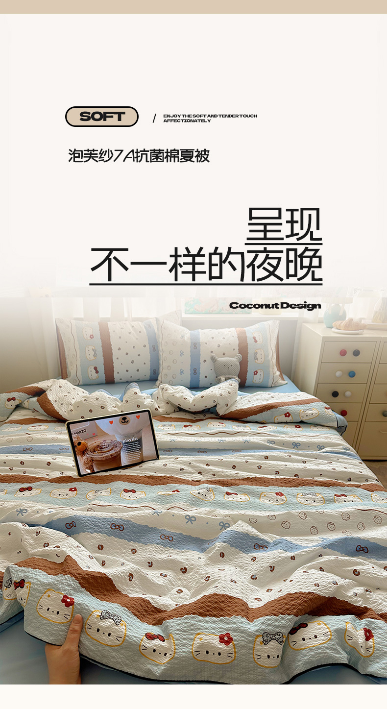 (总)贝扬思家纺 2025新款三丽鸥简约条纹夏被夏凉被空调被套件系列,奶油条kt粉粉,奶油条kt粉黄,奶油条kt黄黄,奶油条kt蓝蓝,奶油条kt紫紫