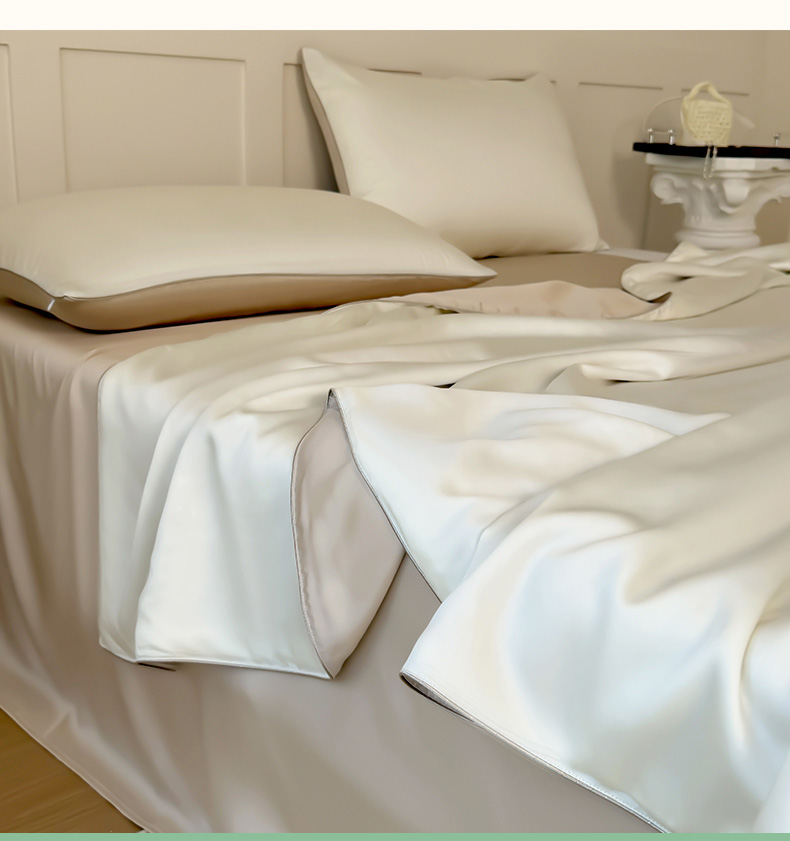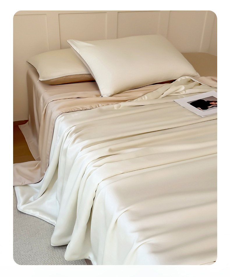• 91家纺网 家纺一手货源 找家纺 (总)鑫田家纺 2026新款60支兰精天丝蚕丝被夏凉被100%纯蚕丝夏被四件套床单床笠学生三件套,浅妮粉,海藻绿,魅紫,钻石白