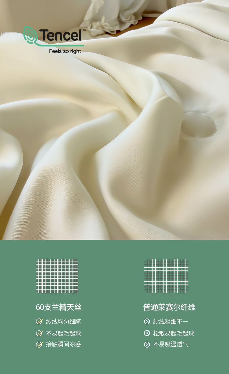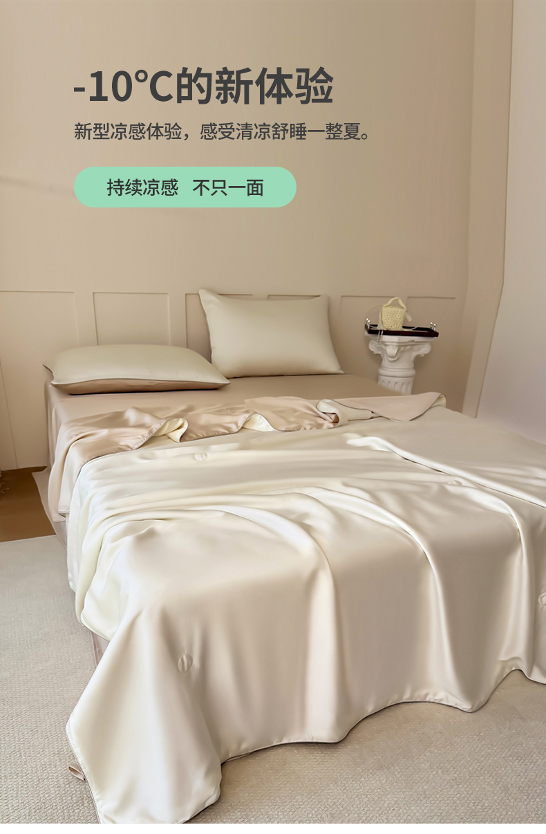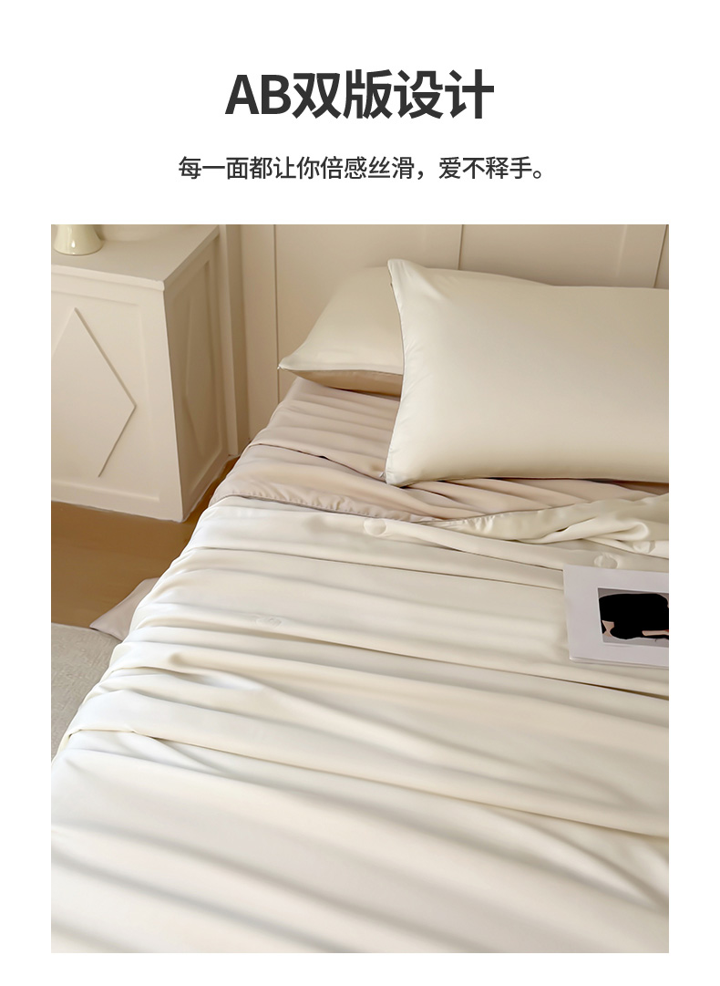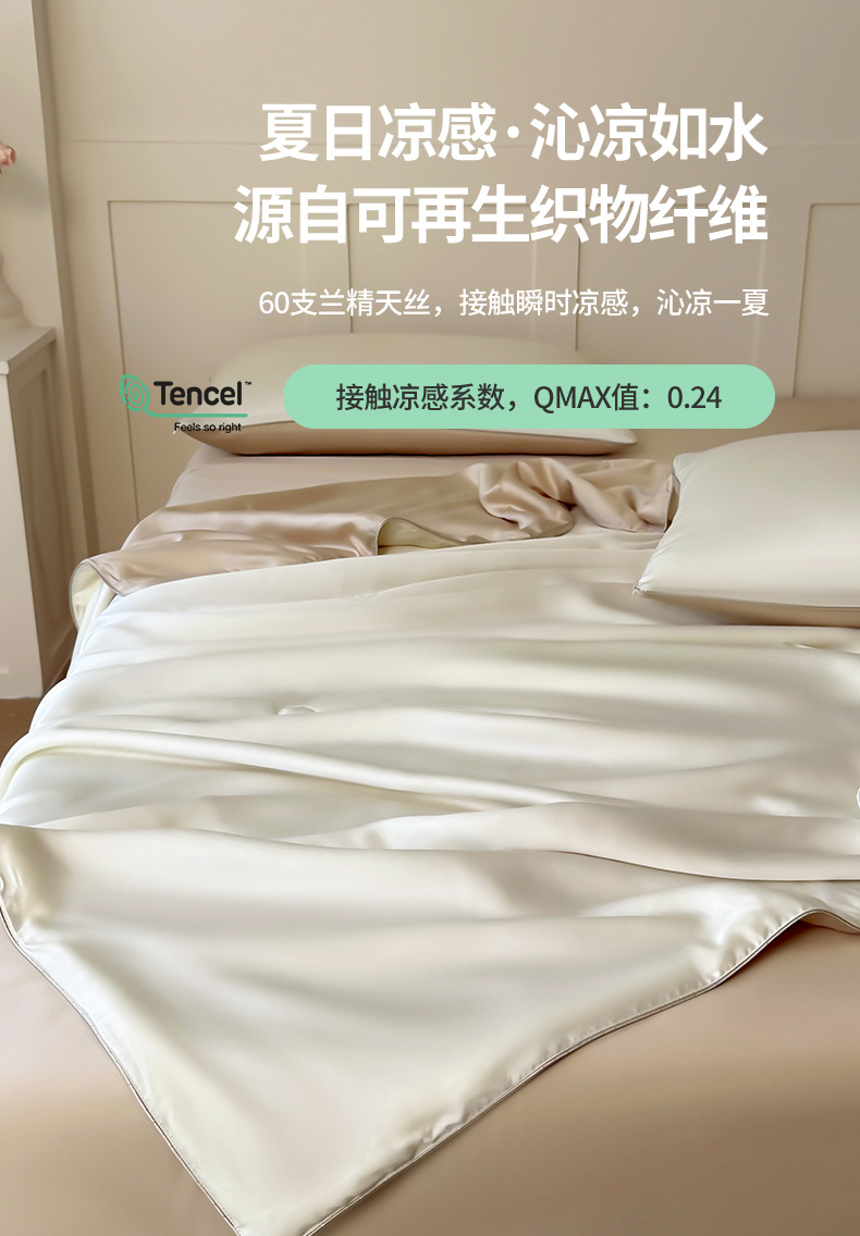 • 91家纺网 家纺一手货源 找家纺 鑫田家纺 2026新款60支兰精天丝蚕丝被夏凉被100%纯蚕丝夏被四件套床单床笠学生三件套 钻石白