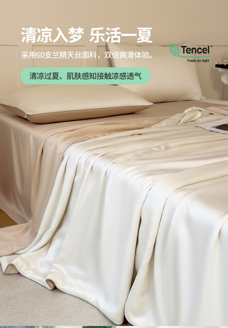 鑫田家纺 2026新款60支兰精天丝蚕丝被夏凉被100%纯蚕丝夏被四件套床单床笠学生三件套 钻石白