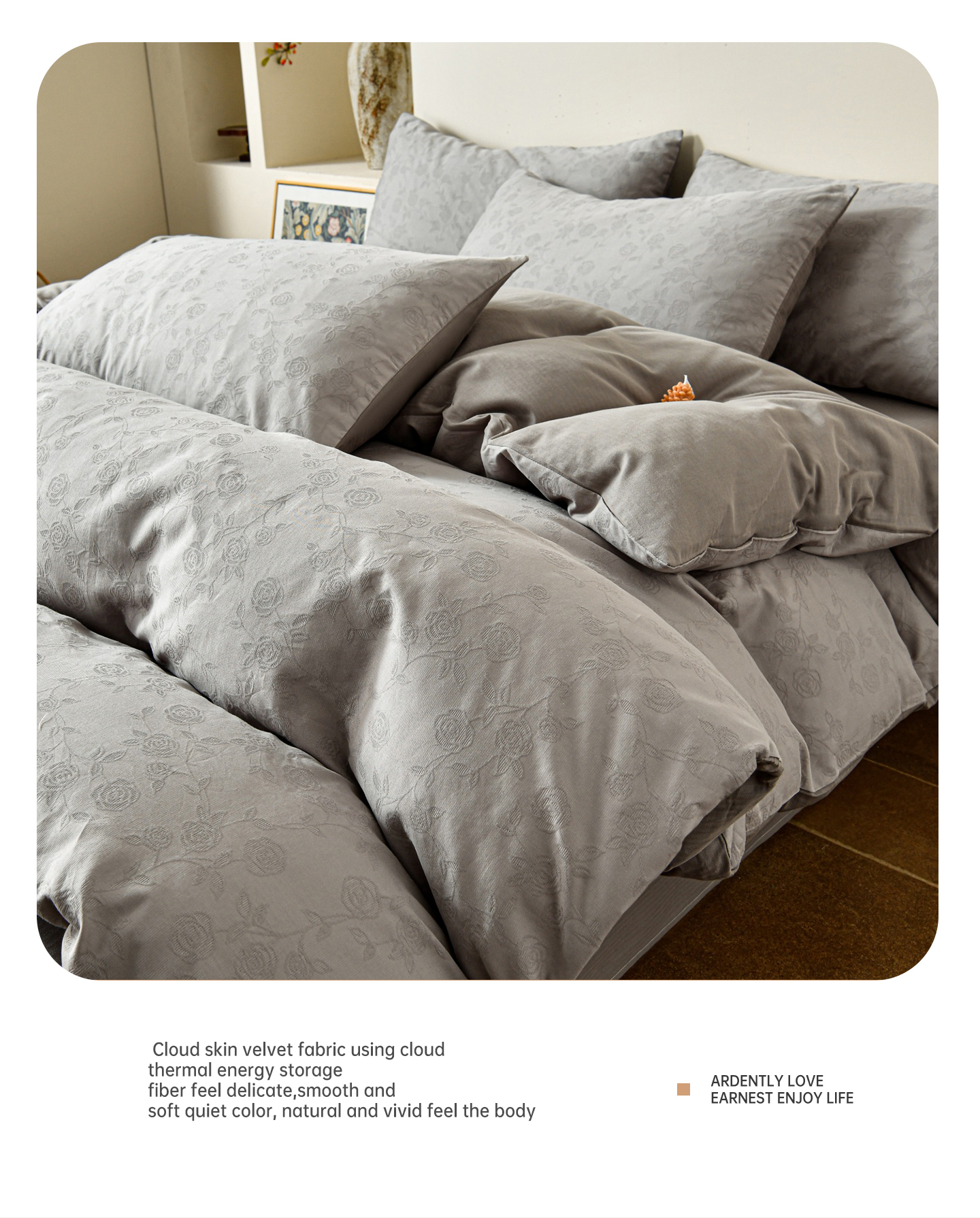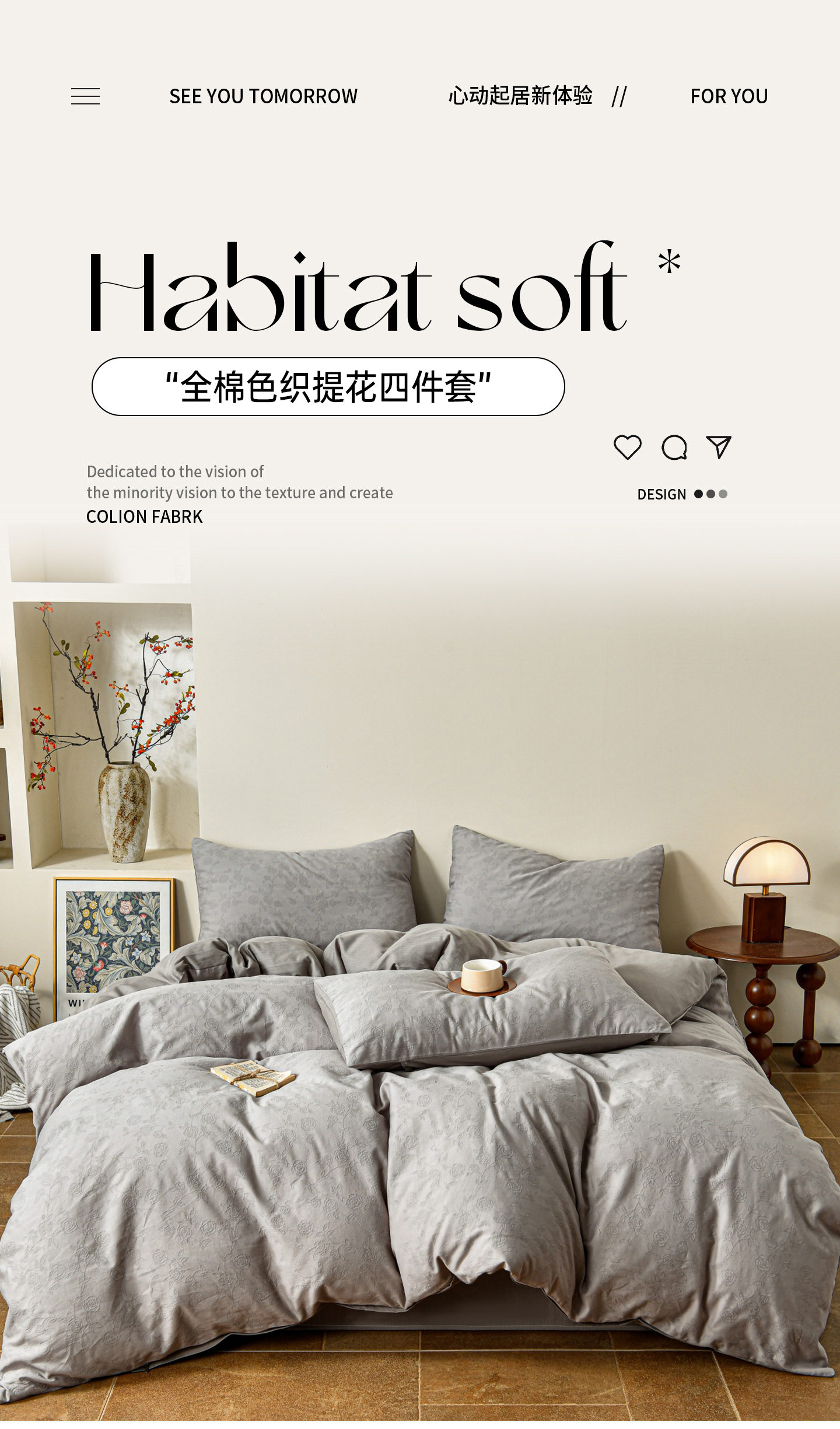 当前位置: 91家纺网 > 商品网购 > 床品套件 > 四件套 > 全棉普通四件套 > 菡宝 2026春夏新款全棉纯棉色织提花四件套-中古玫瑰 中古玫瑰 浅灰