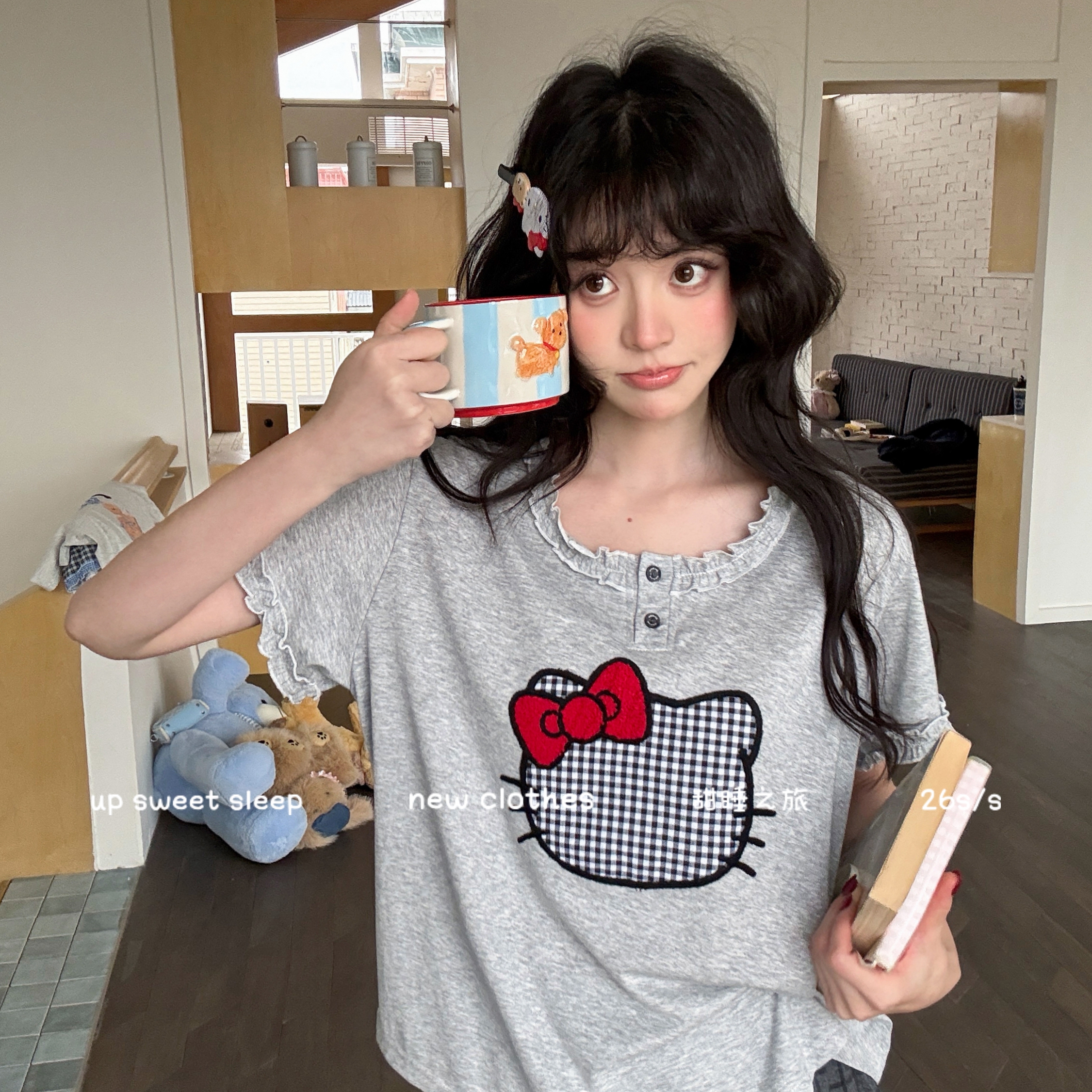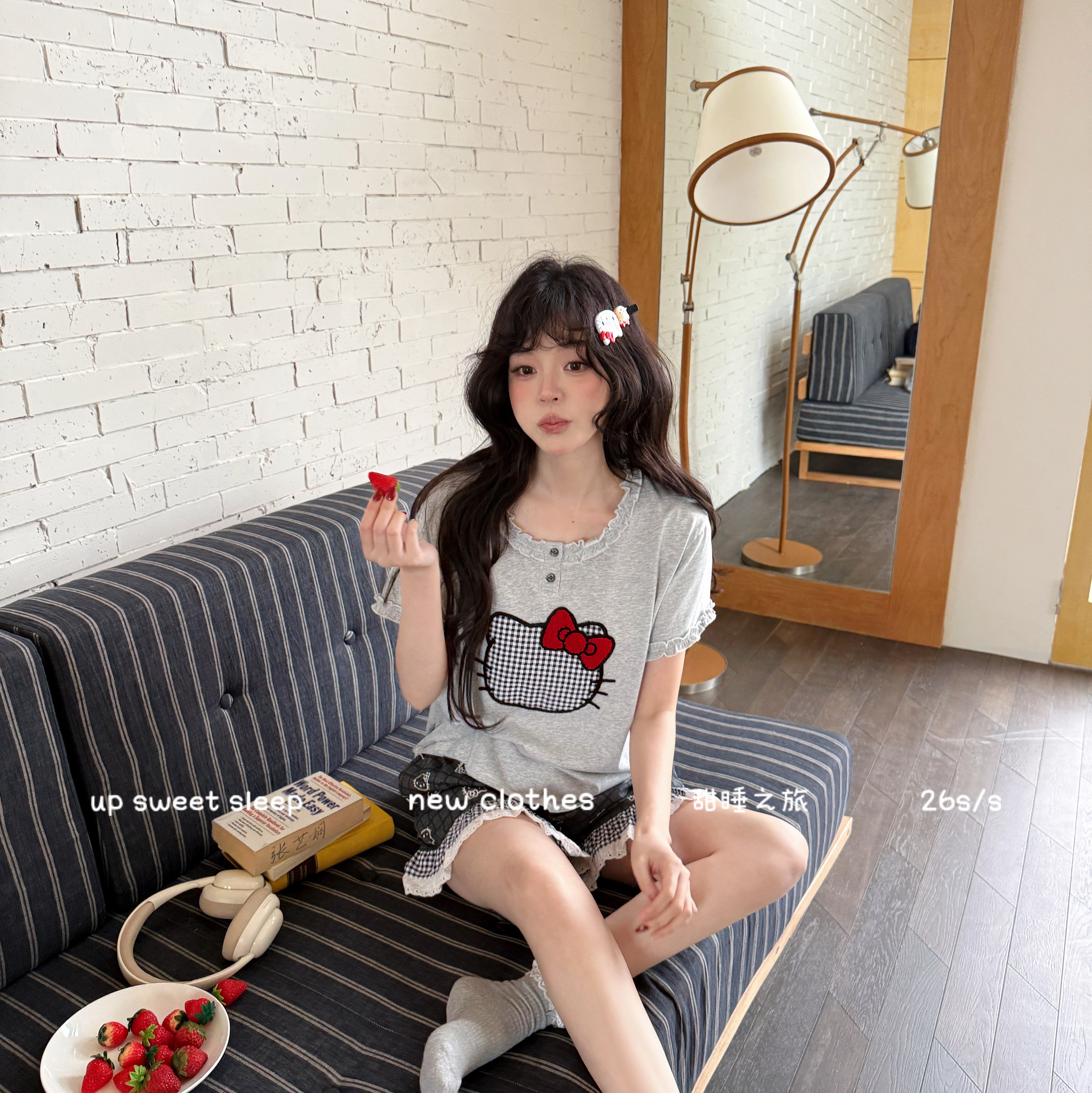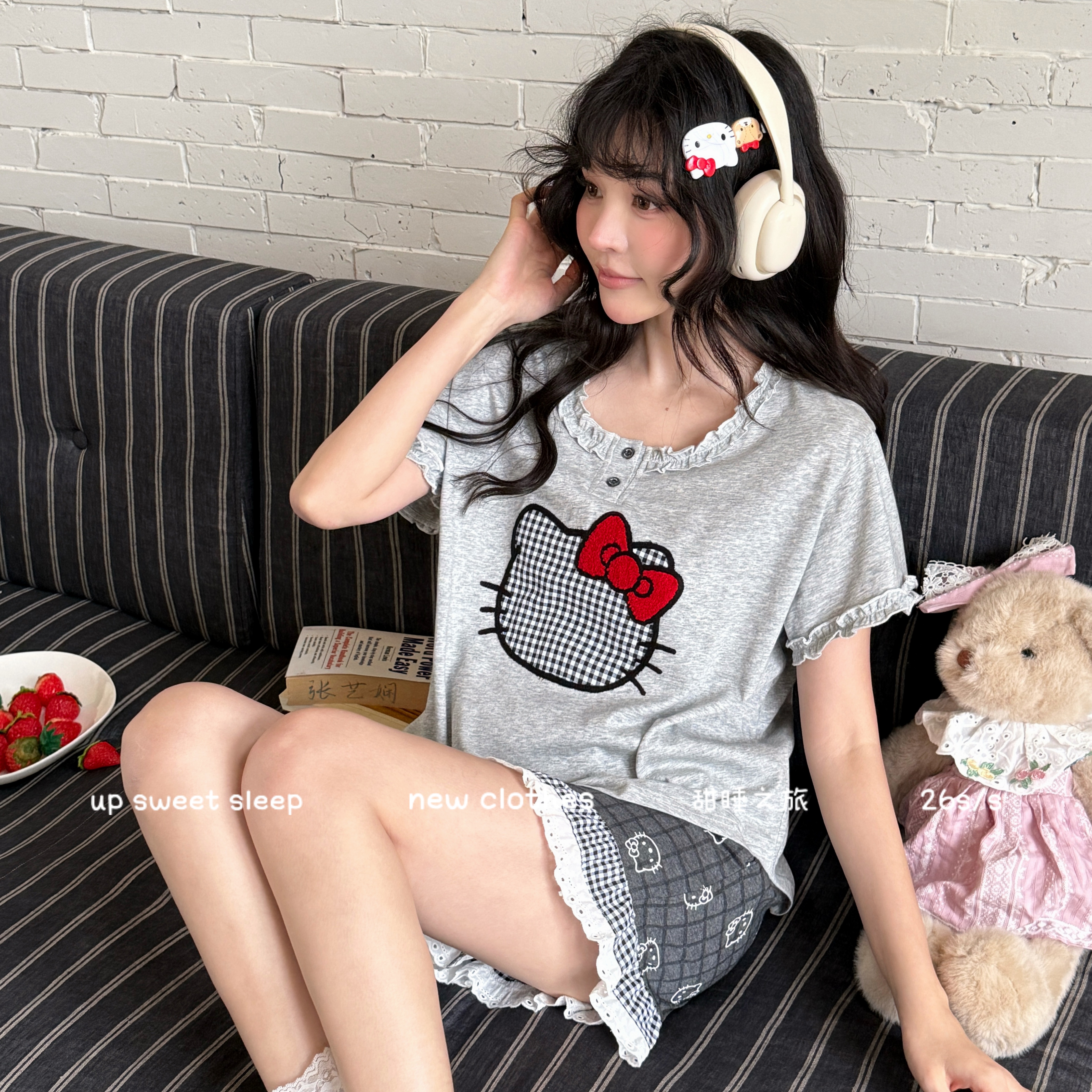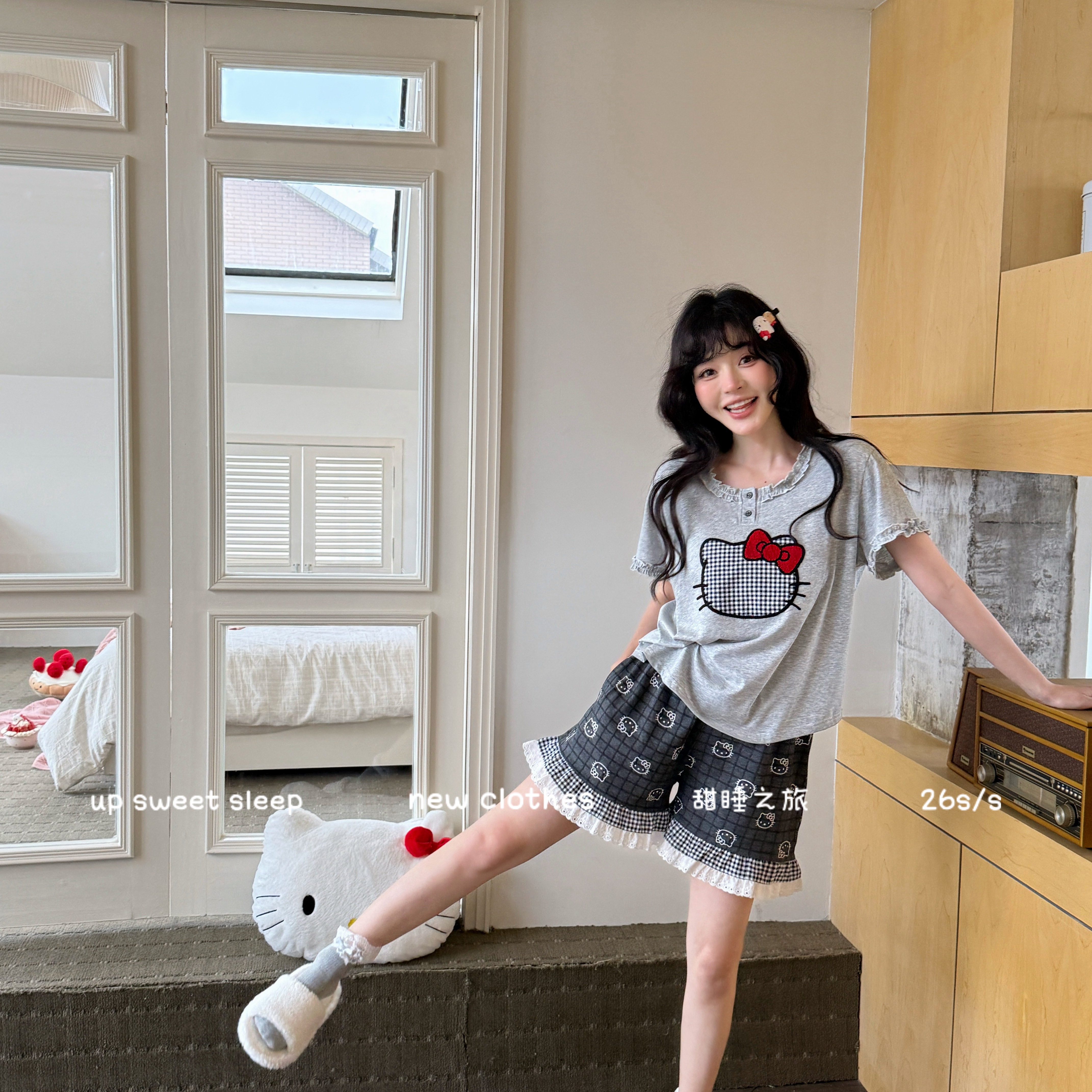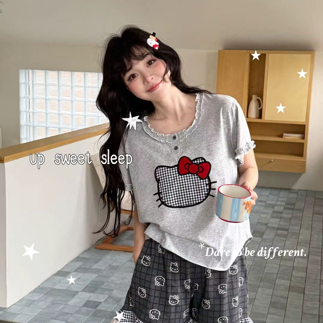 当前位置: 91家纺网 > 商品网购 > 居家日用 > 睡衣/家居服套装 > (总)妍景家居生活馆 2026新款莱赛尔棉睡衣短裤两件套KT格