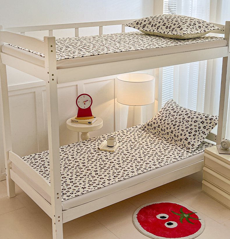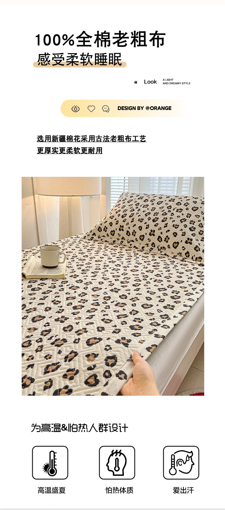 忆生活家纺 2026新款学生床全棉老粗布软凉席夹棉床盖 豹纹