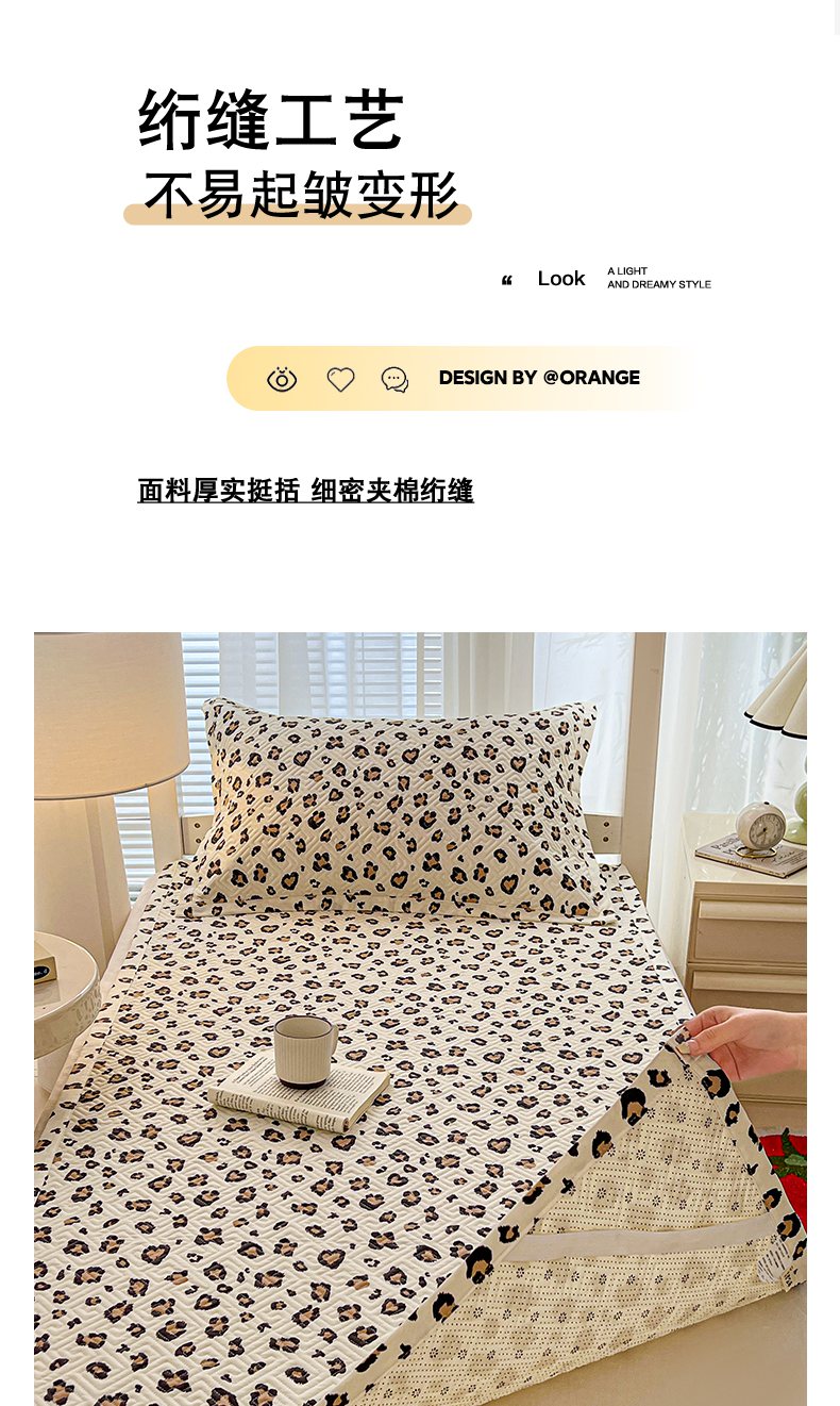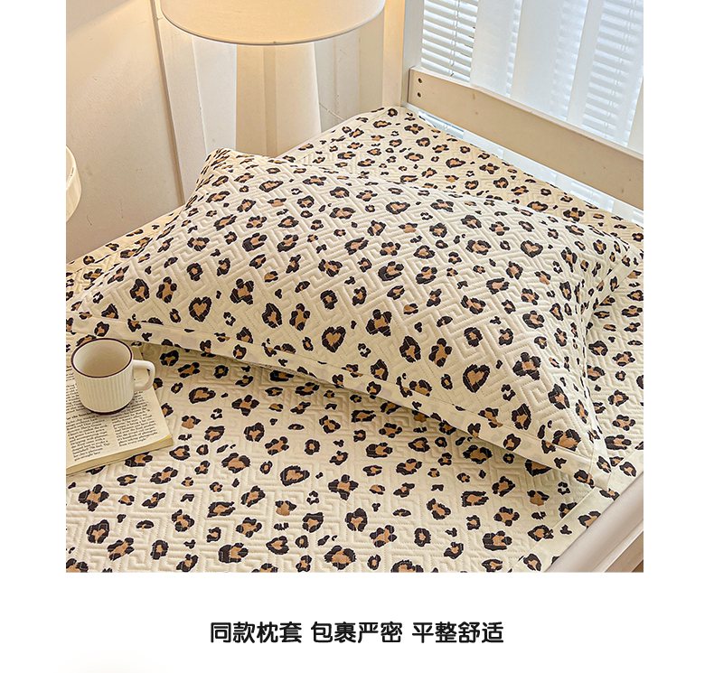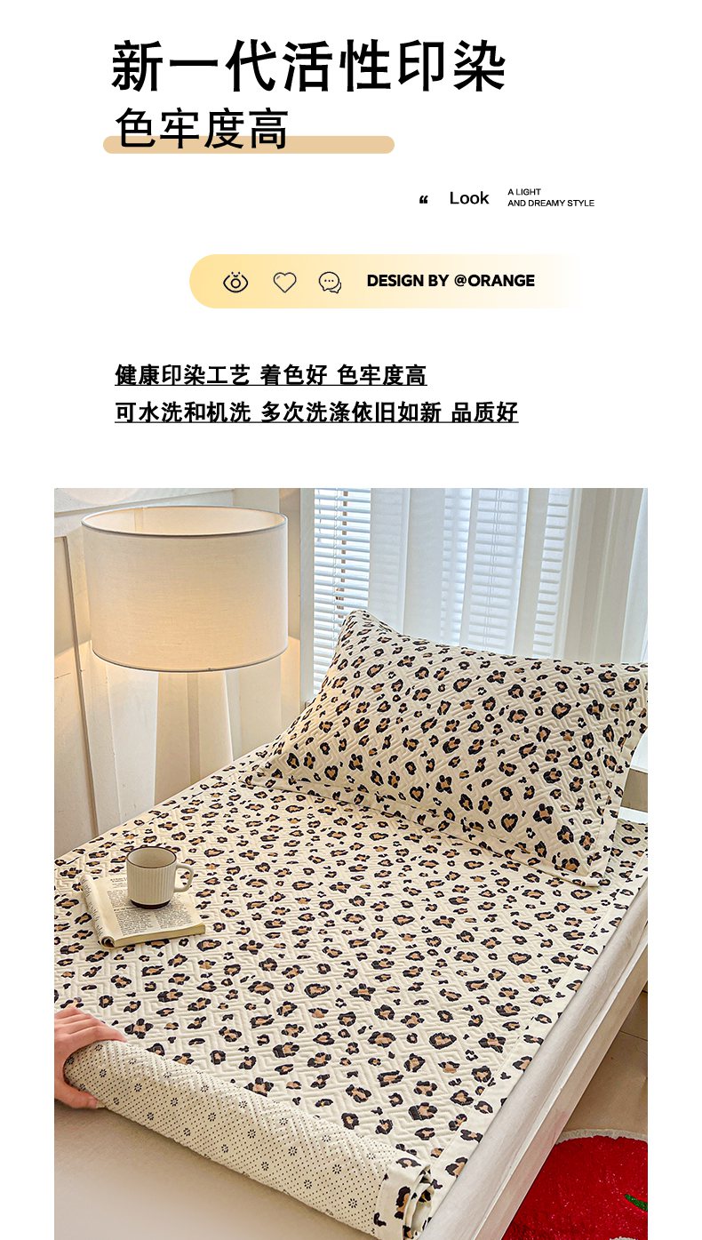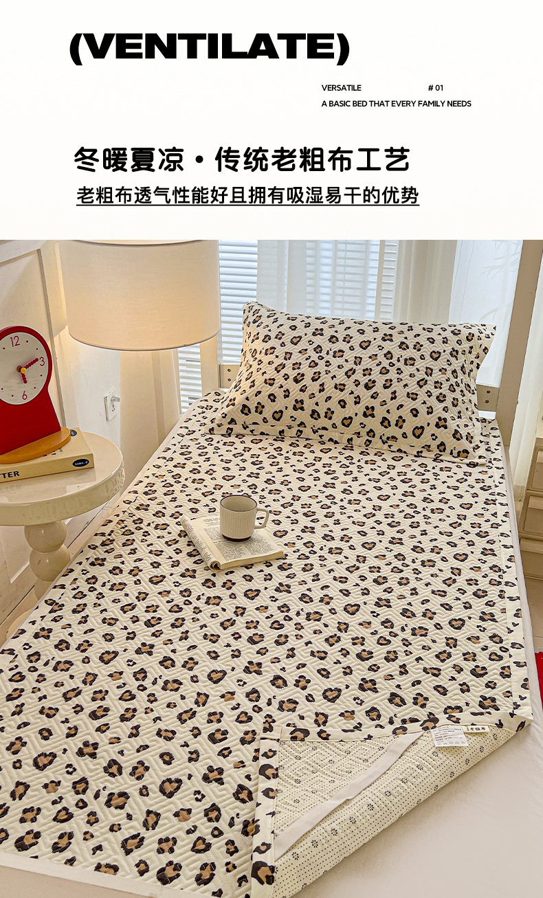 • 91家纺网 家纺一手货源 找家纺 忆生活家纺 2026新款学生床全棉老粗布软凉席夹棉床盖 豹纹