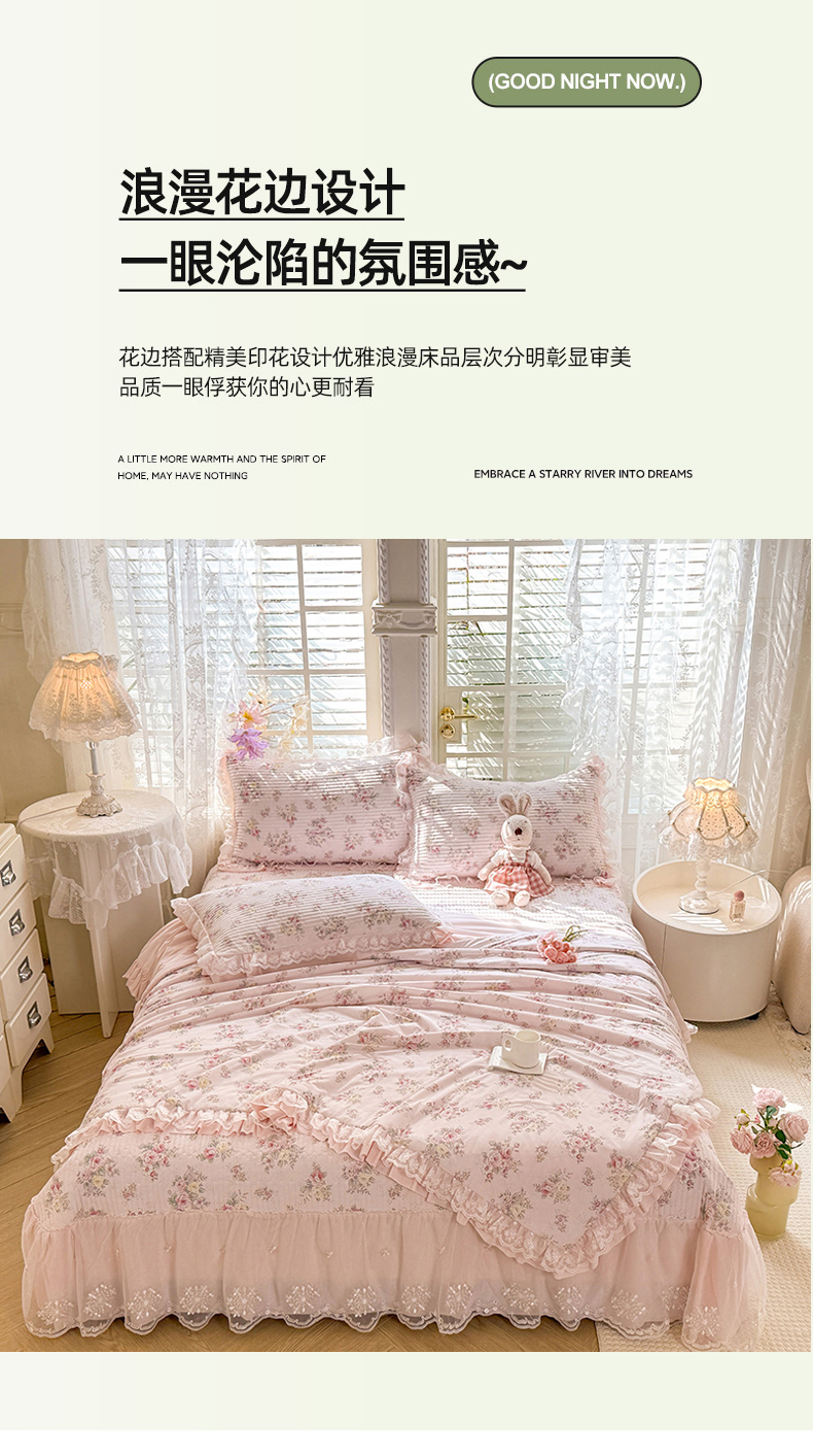 (总)苏米娜家纺2026春夏新款活性印花ins风小碎花软糯水洗棉床盖款四件套全棉纯棉花边款被套,春田绿 ,紫韵,兰黛 , 奶酪芝士 ,莫奈-粉