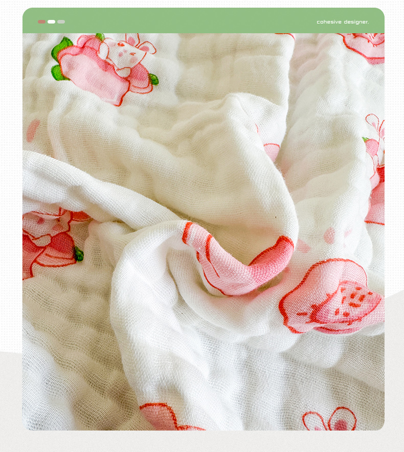 慕婷家纺 2026新款婴儿纱布浴巾浴巾全棉六层纱布泡泡纱布毛巾被 桃气多多
