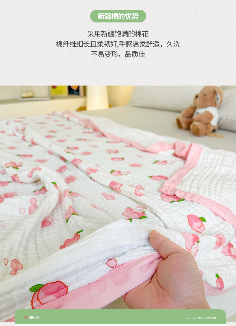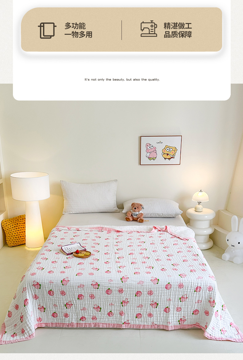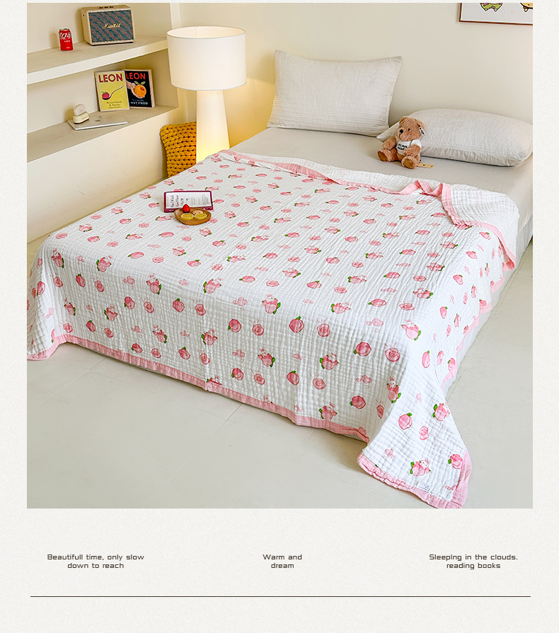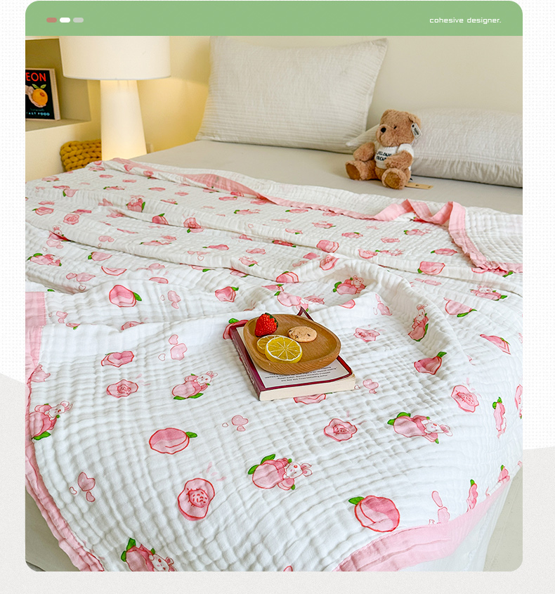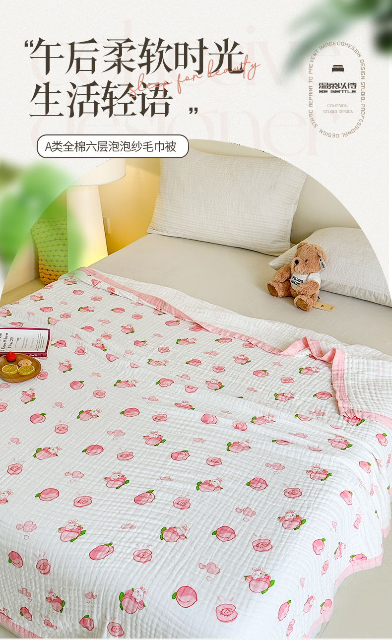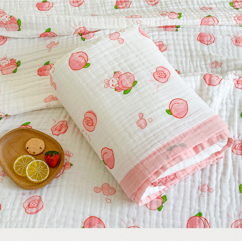 商品名称:慕婷家纺 2026新款婴儿纱布浴巾浴巾全棉六层纱布泡泡纱布毛巾被 桃气多多