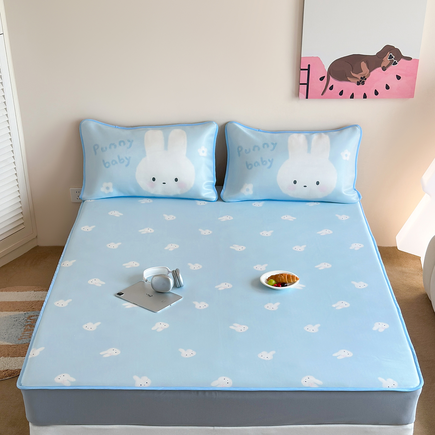 商品名称:桃喜 2026新款数码印花冰纤维牛奶丝凉席 面包腊肠狗