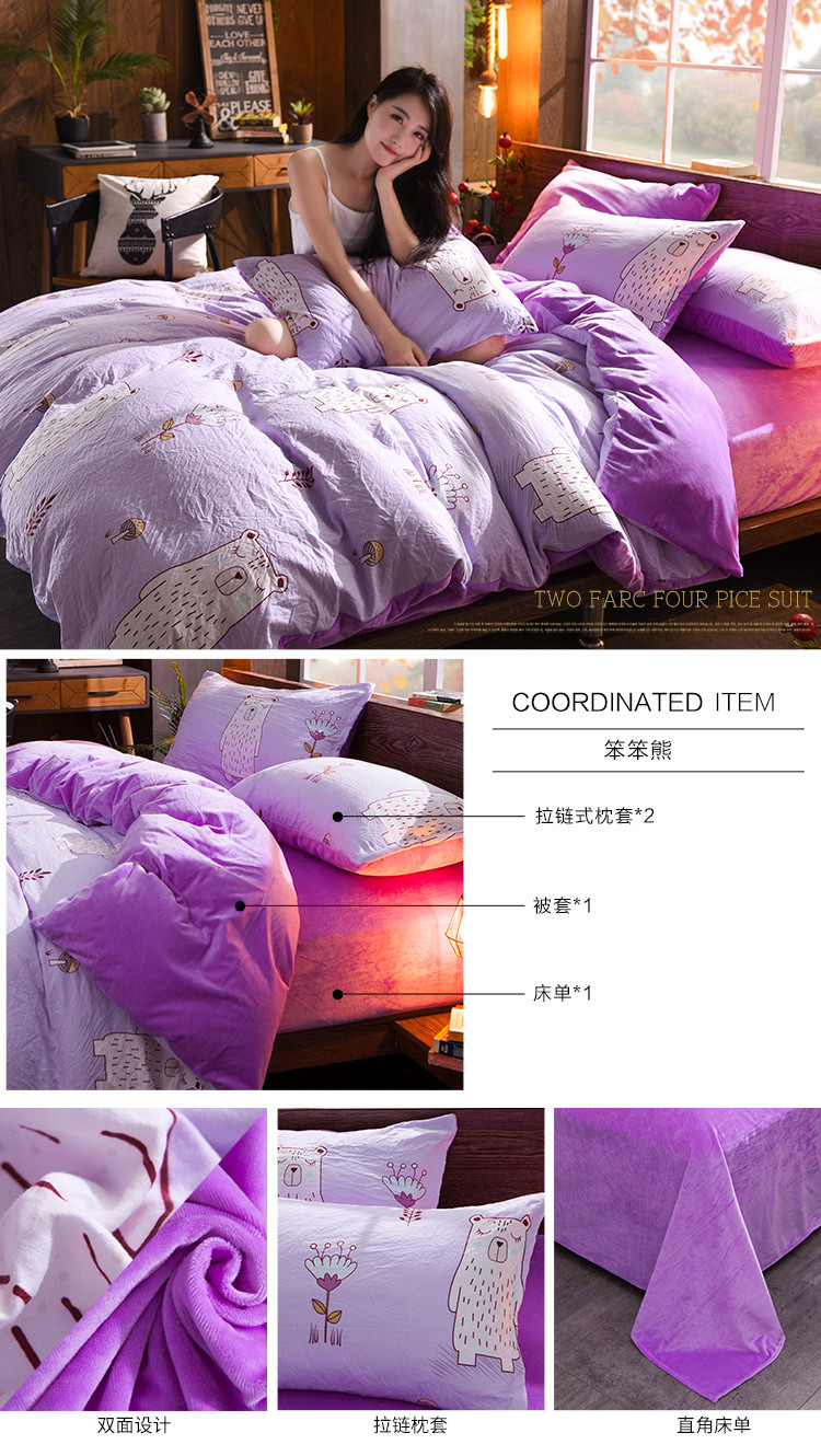 商品名称:芃成家纺 水洗磨毛加绒四件套 笨笨熊