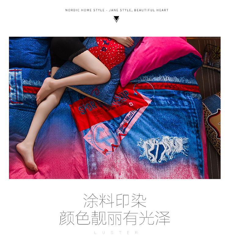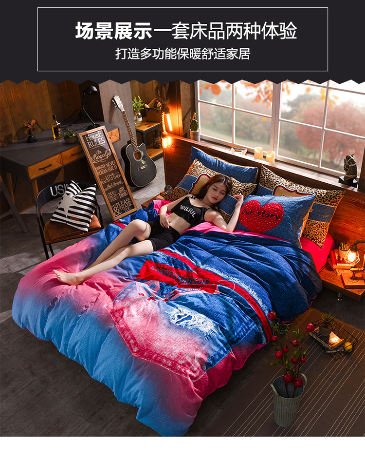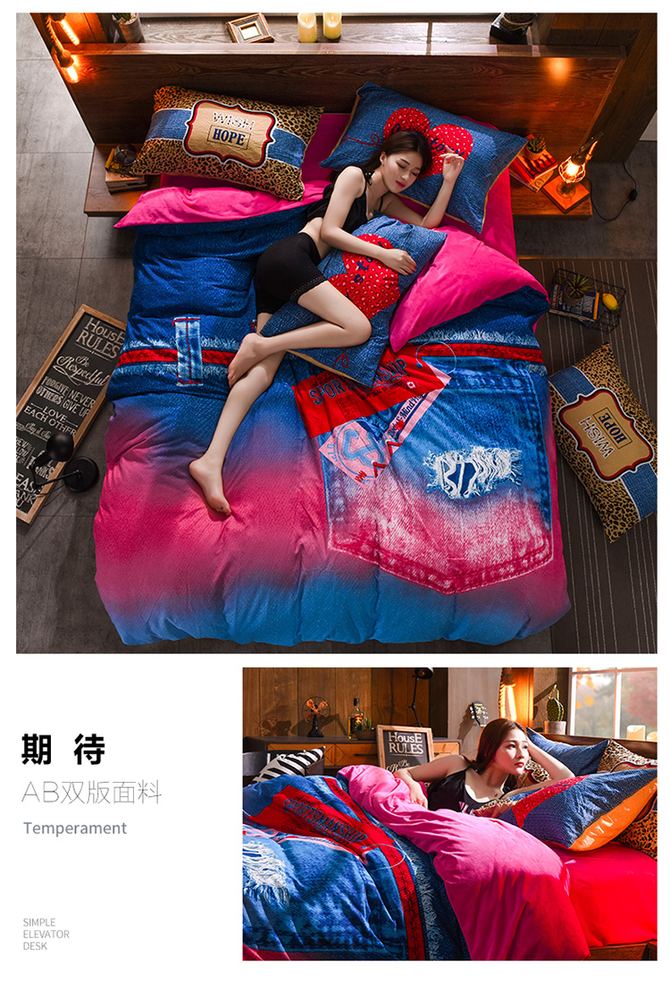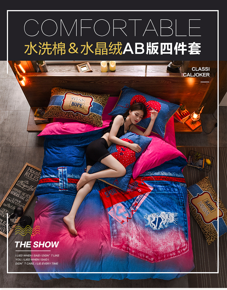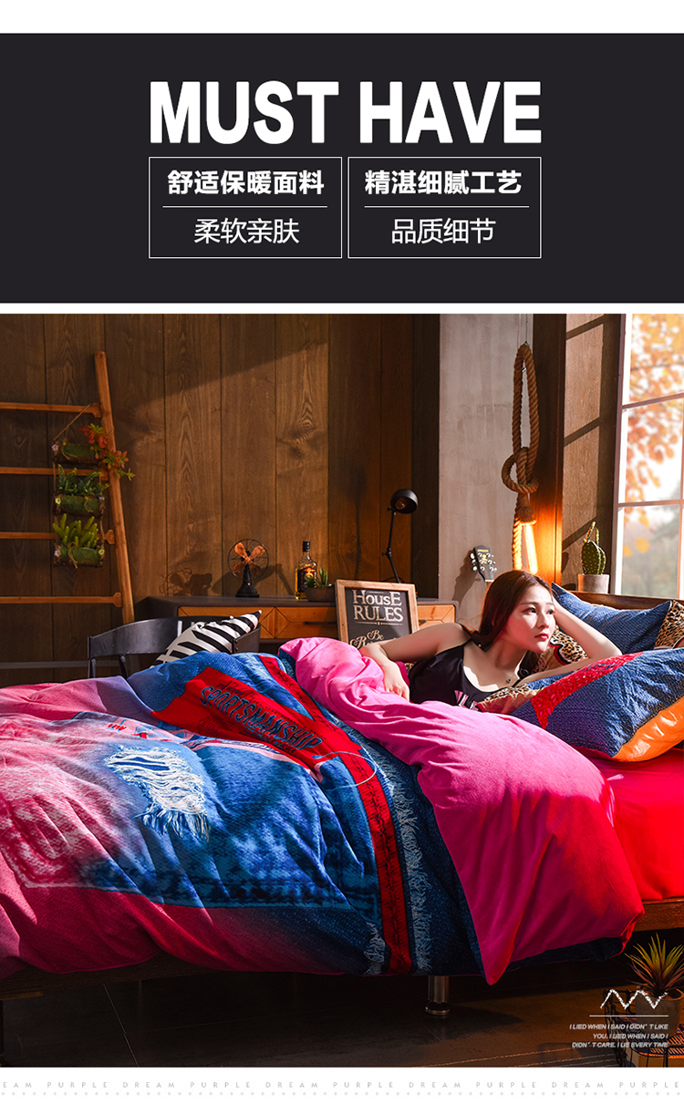 芃成家纺 磨毛水洗棉平网印花拼水晶绒四件套期待