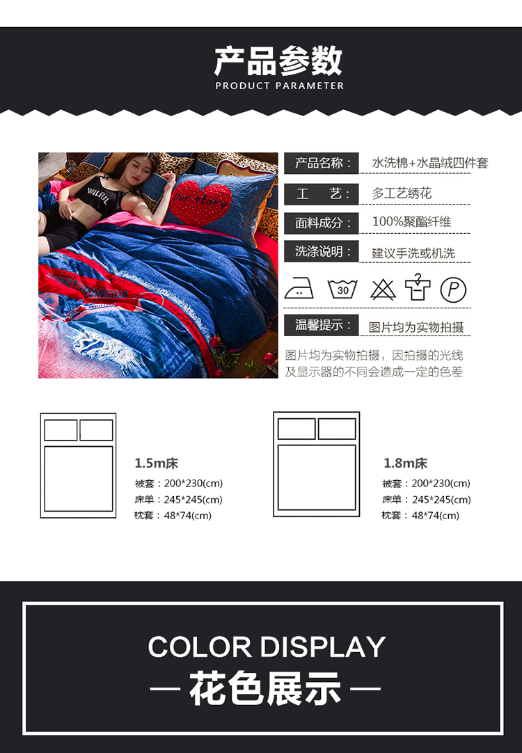 商品名称:芃成家纺 磨毛水洗棉平网印花拼水晶绒四件套期待