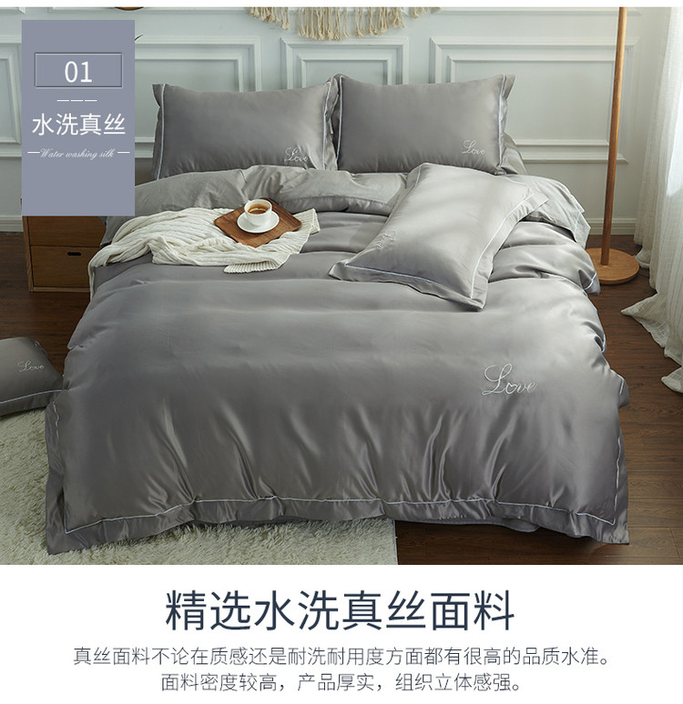 商品名称:意尚风情 2020新款·绣花水洗真丝四件套床单款贝芙丽(灰)