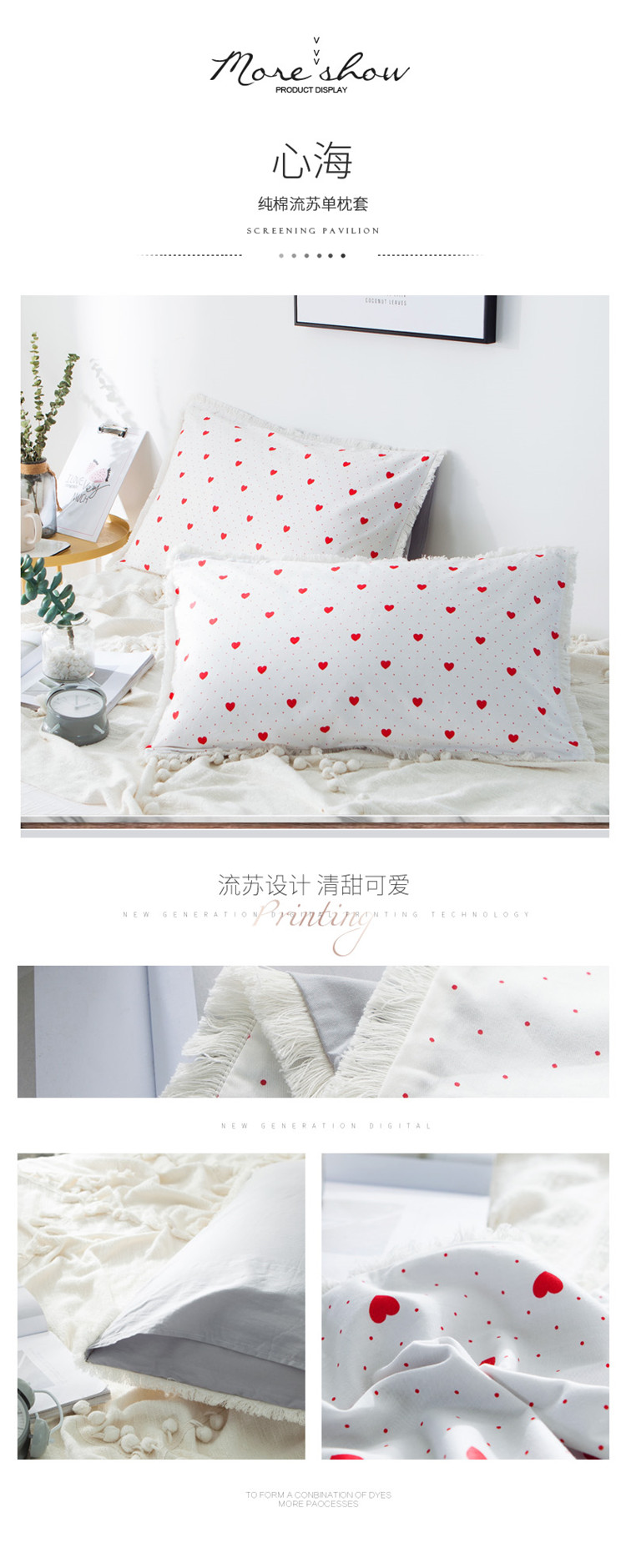 涵宸家纺 新款13372流苏款全棉单品枕套一对 心海