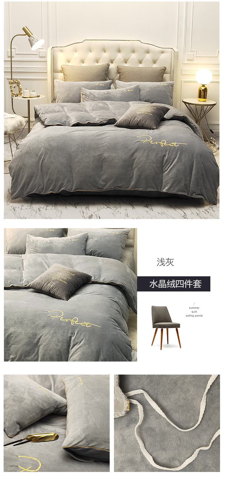 (总)米奈 2020北欧水晶绒四件套法莱绒四件套滚边绣花罗恩