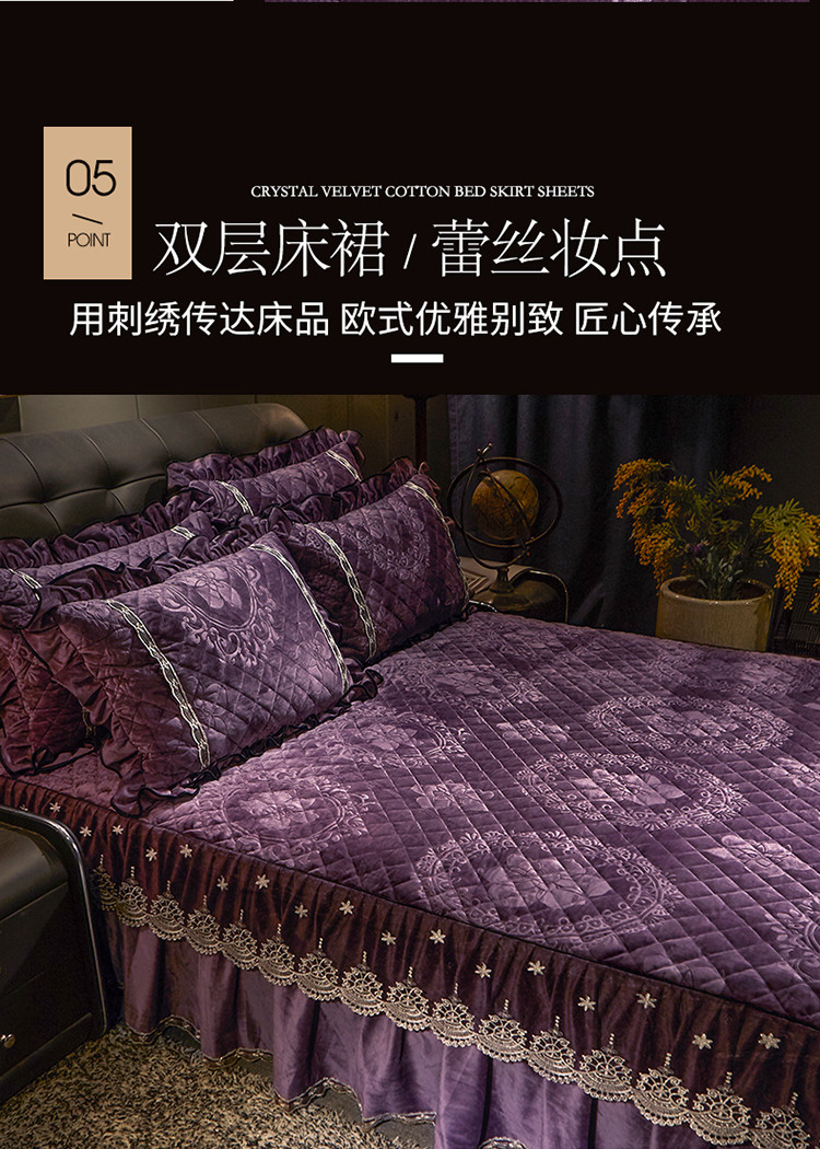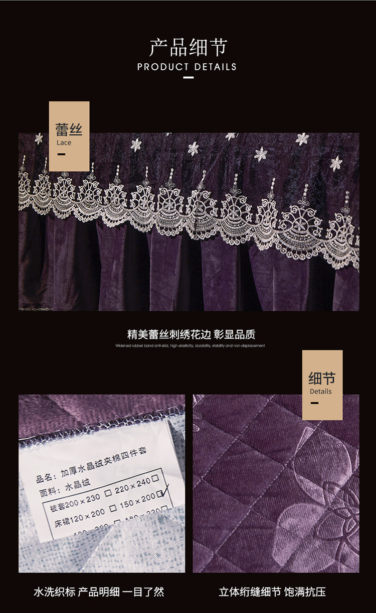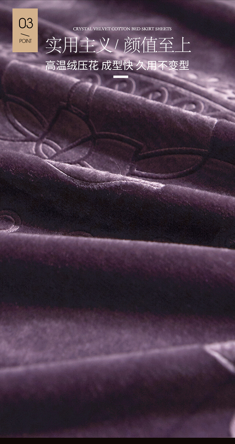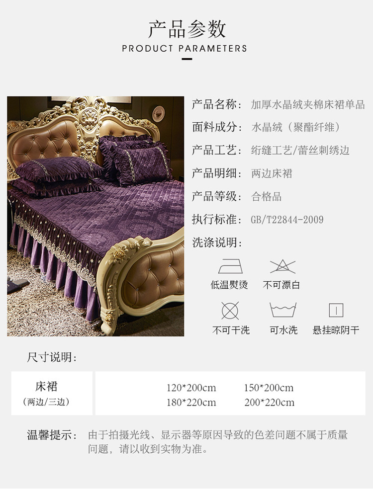 商品名称:宜凡家纺 2019新款水晶绒夹棉床裙两边 花之都-深紫