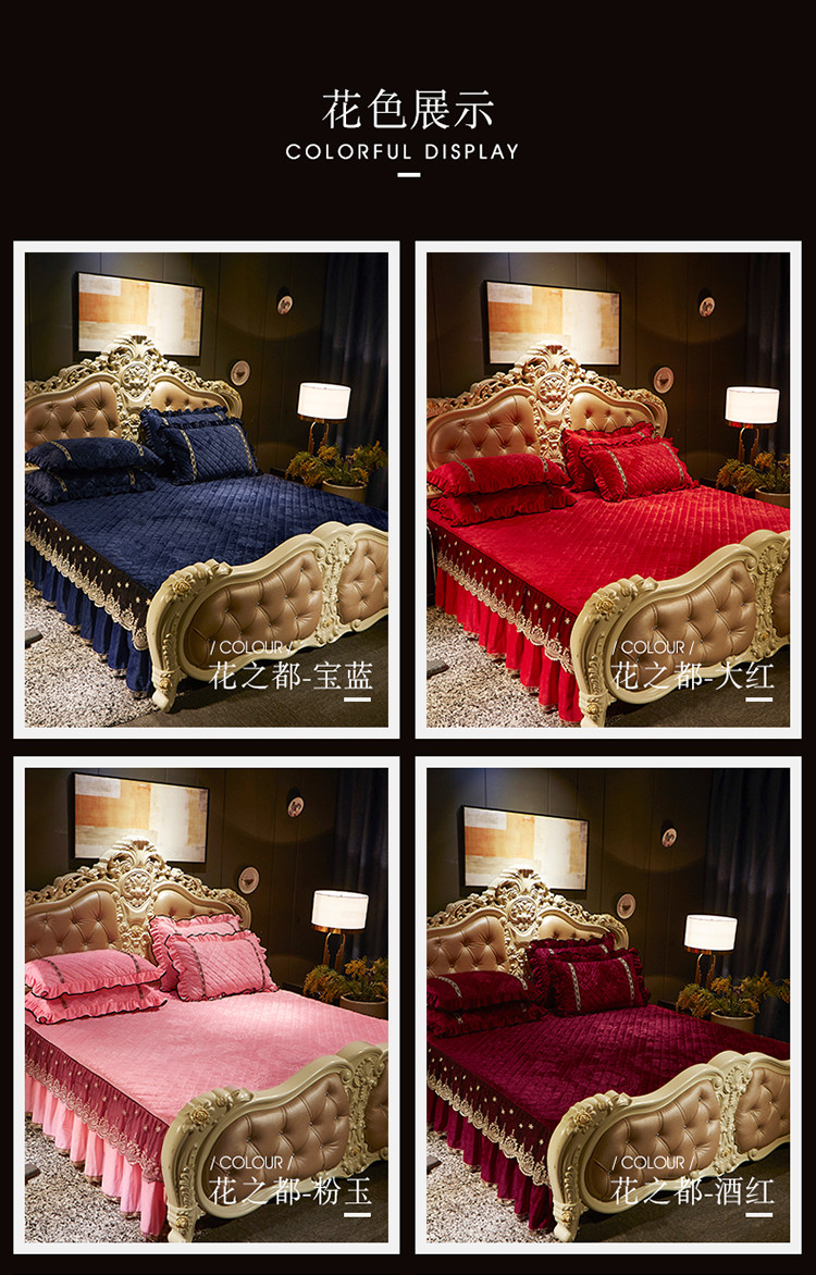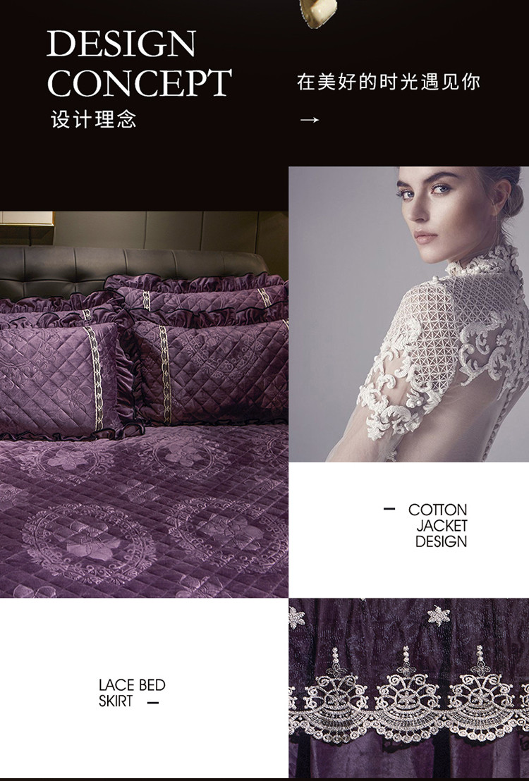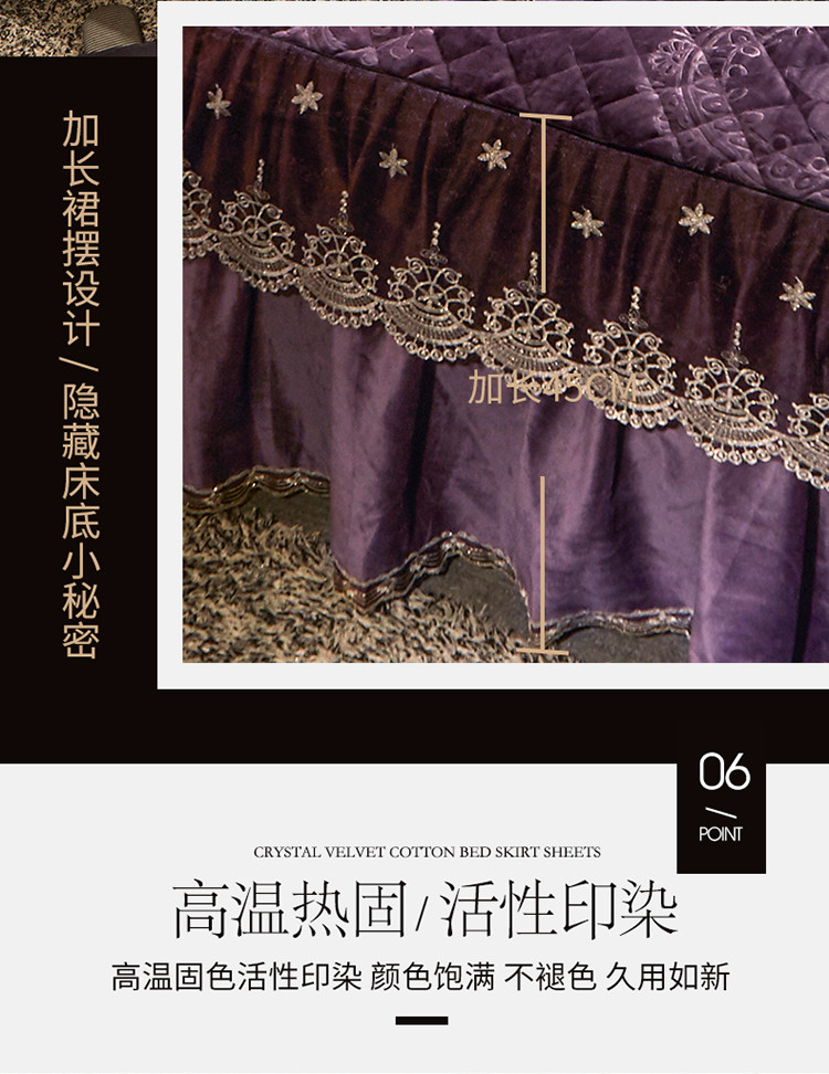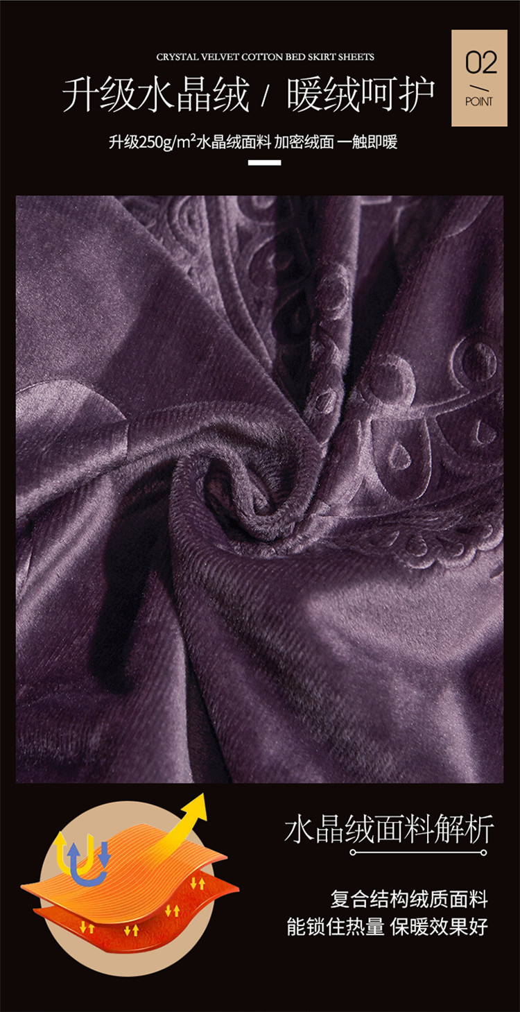 商品名称:宜凡家纺 2019新款水晶绒夹棉床裙两边 花之都-深紫