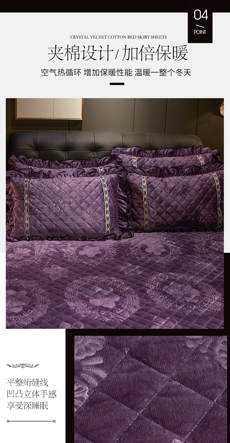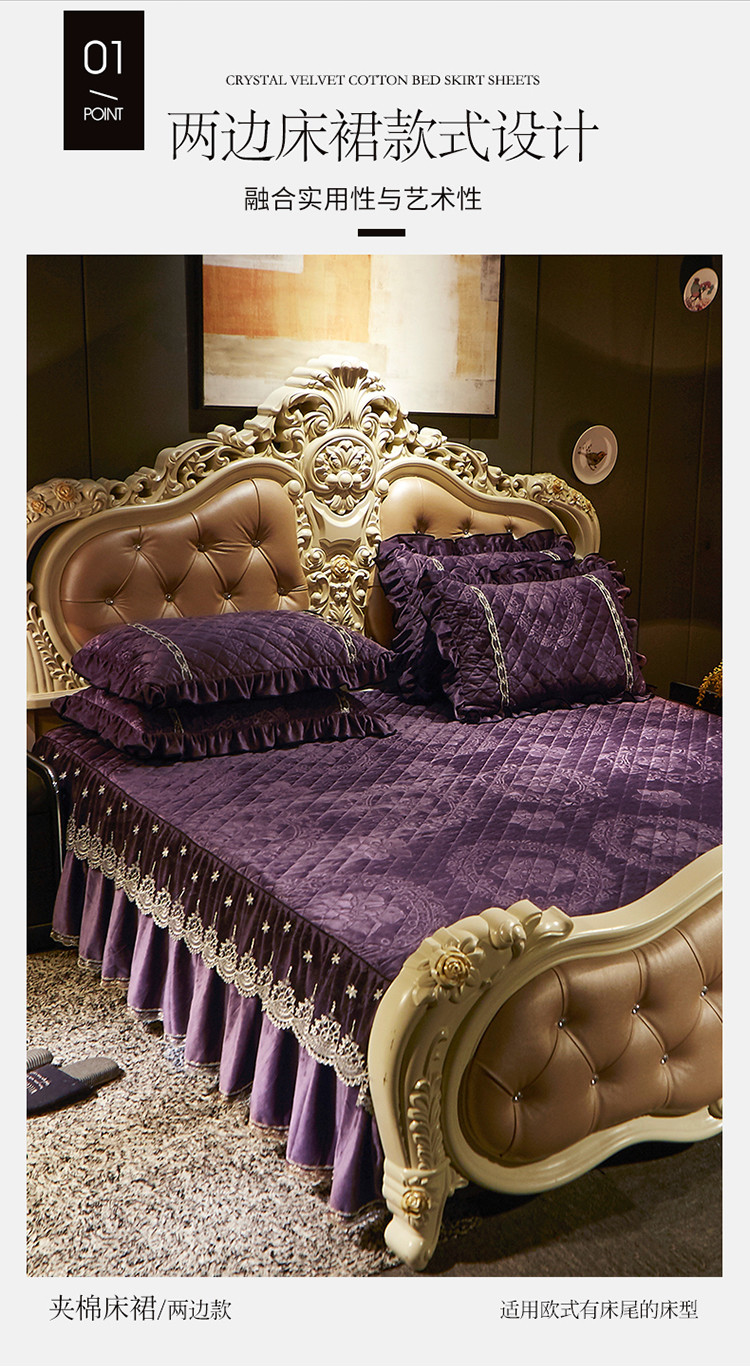 宜凡家纺 2019新款水晶绒夹棉床裙两边 花之都-深紫
