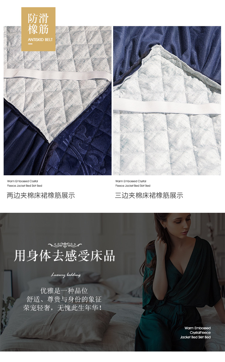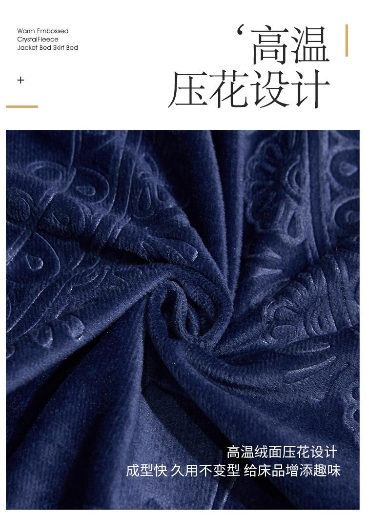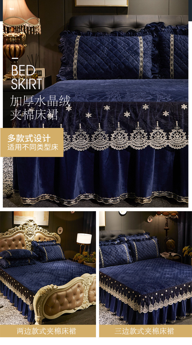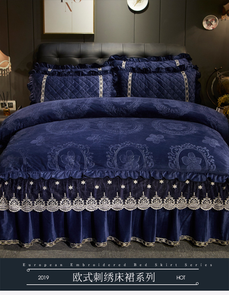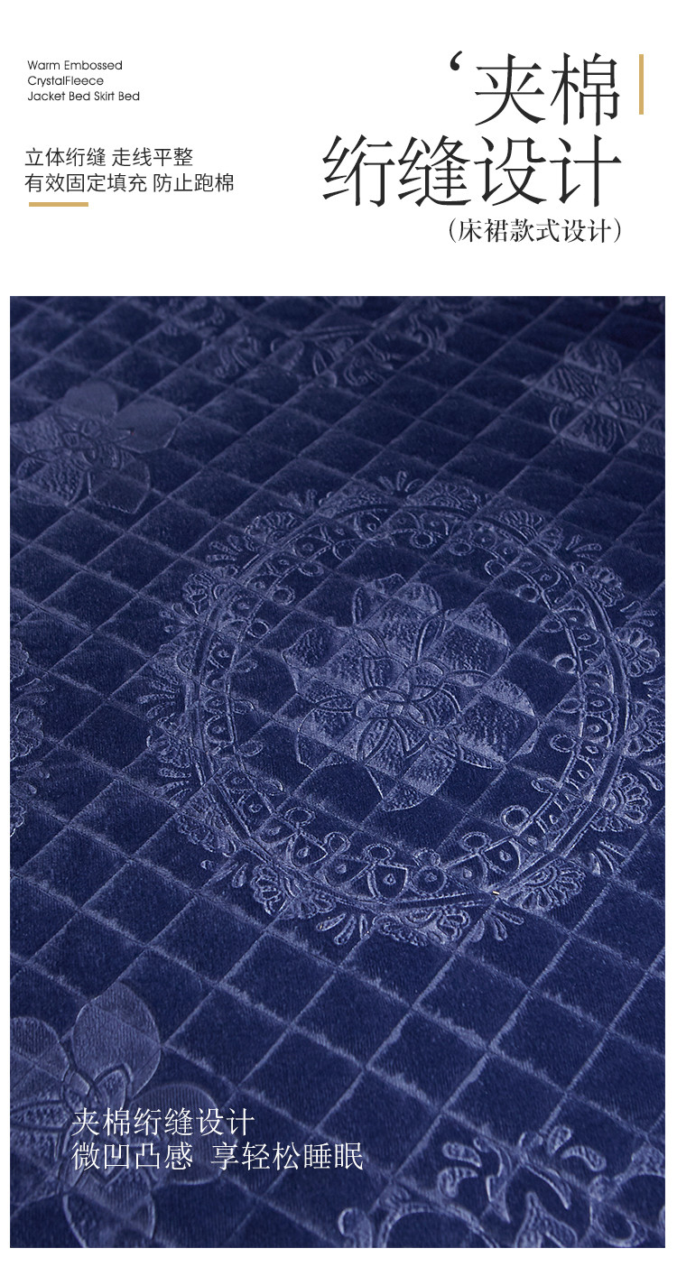 商品名称:宜凡家纺 2019新款水晶绒夹棉床裙四件套 花之都-宝蓝