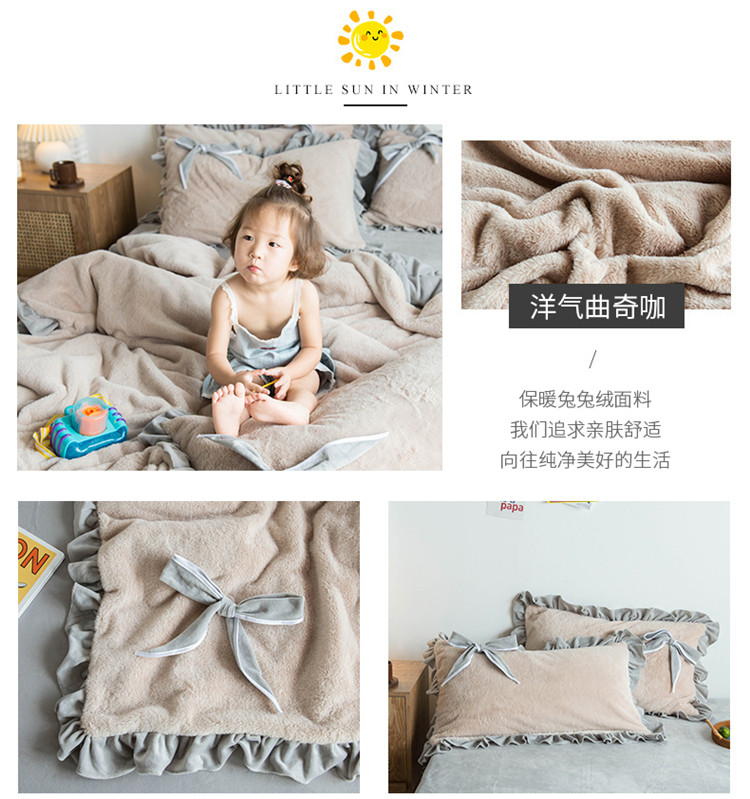 商品名称:北纬27度 韩国兔兔绒少女心蝴蝶结四件套 洋气曲奇咖