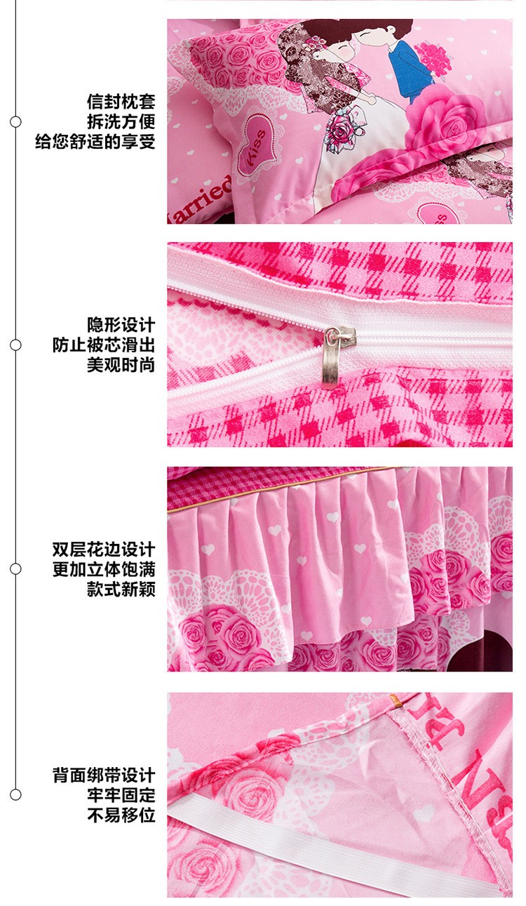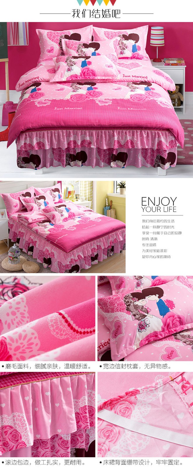商品名称:梦柏家纺 2019新款加厚磨毛小版四件套床裙款 我们结婚吧