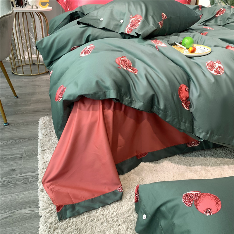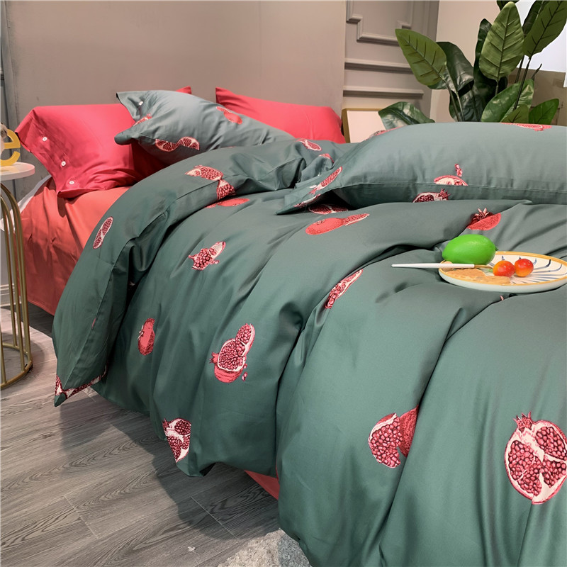 (总)优然居2020新款100支婴儿暖绒棉轻奢风刺绣四件套,大地黄加藏青,复古咖青,轻奢粉灰,霜绿大地色,霜绿复古色