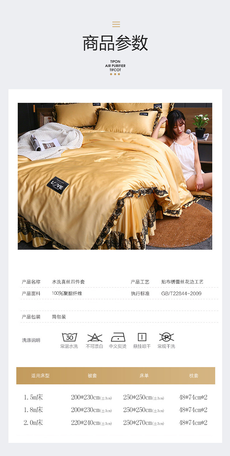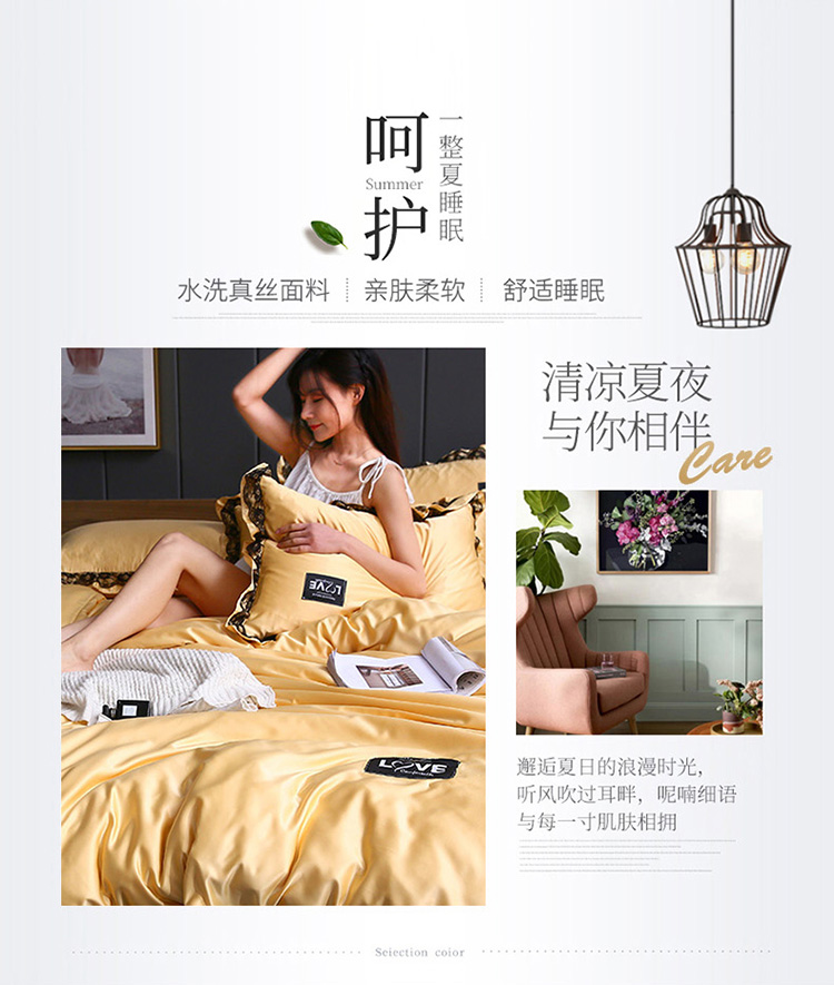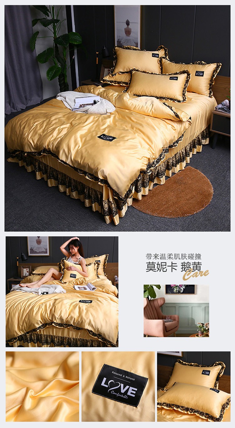商品名称:铠畅 2020新款水洗真丝四件套 莫妮卡 鹅黄