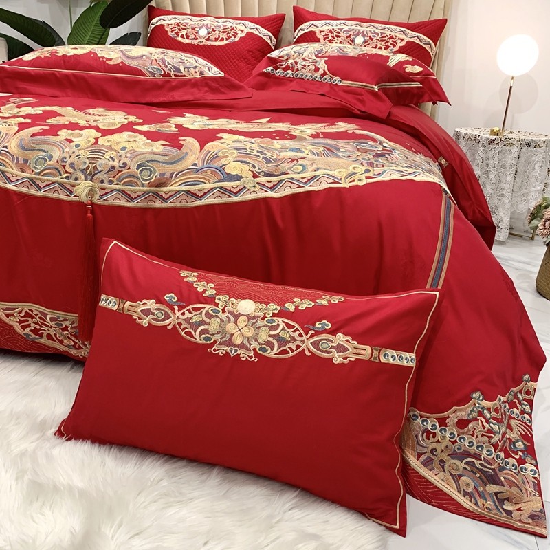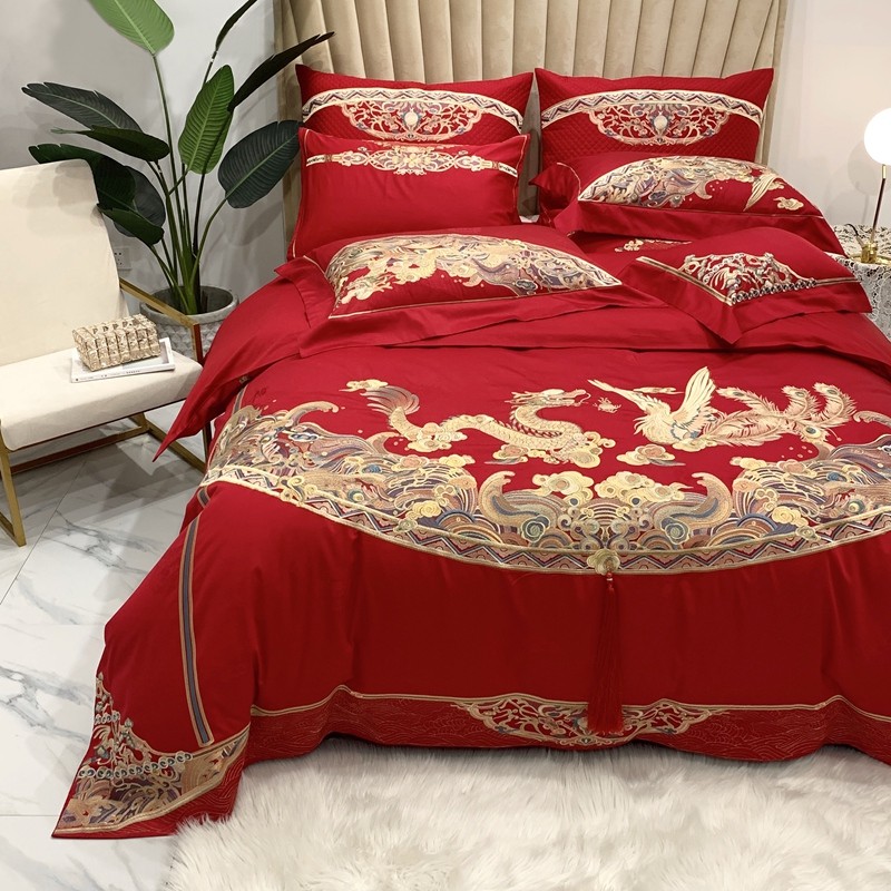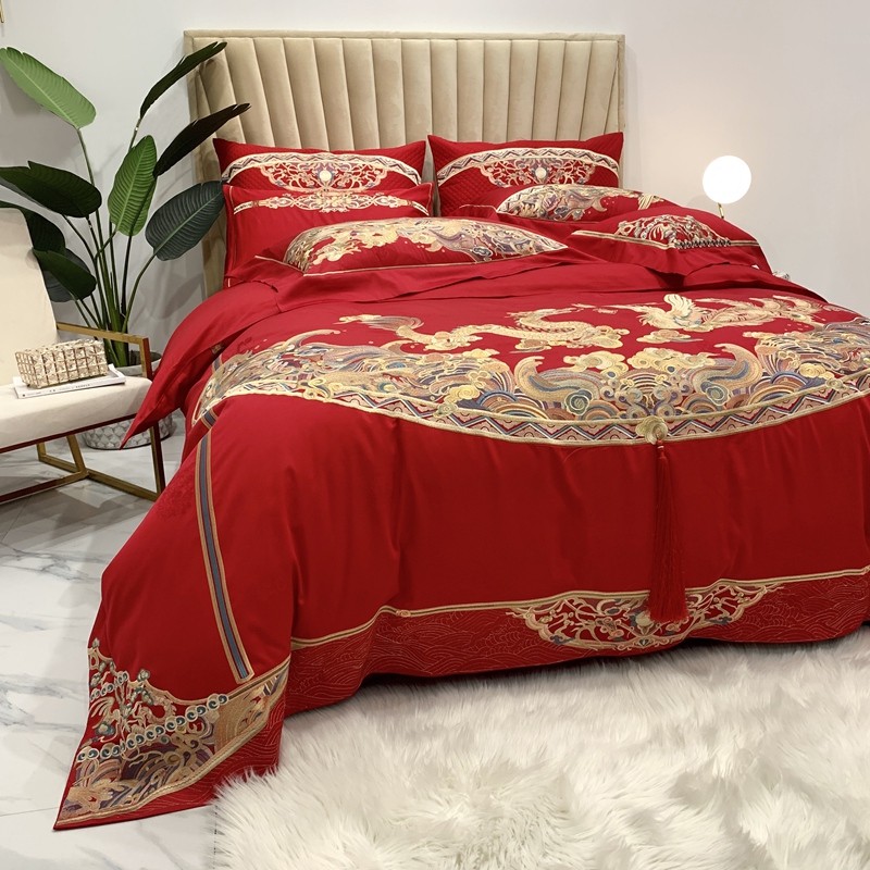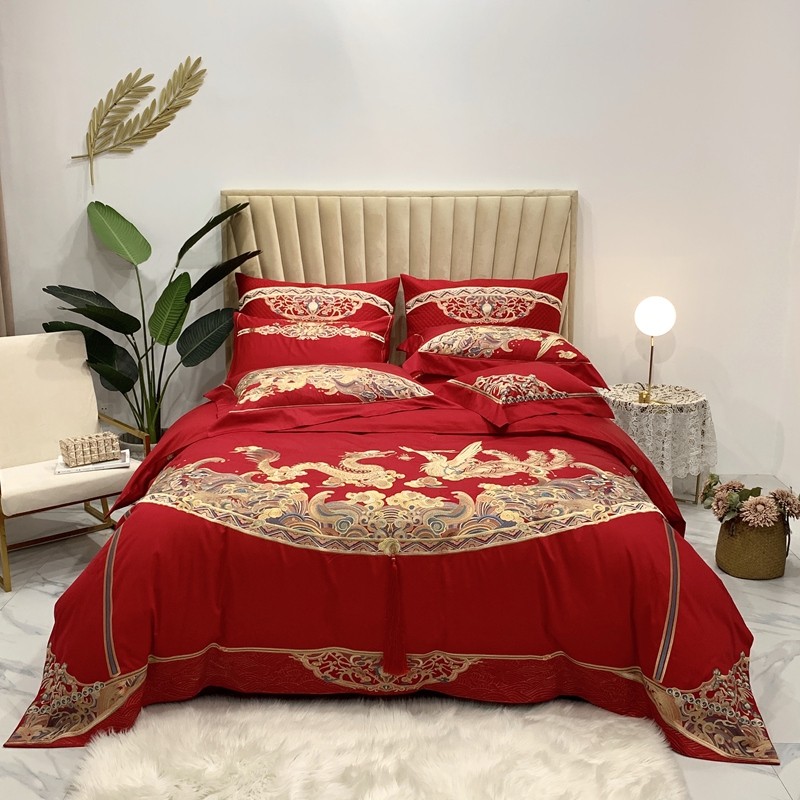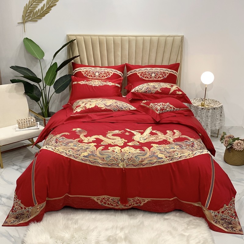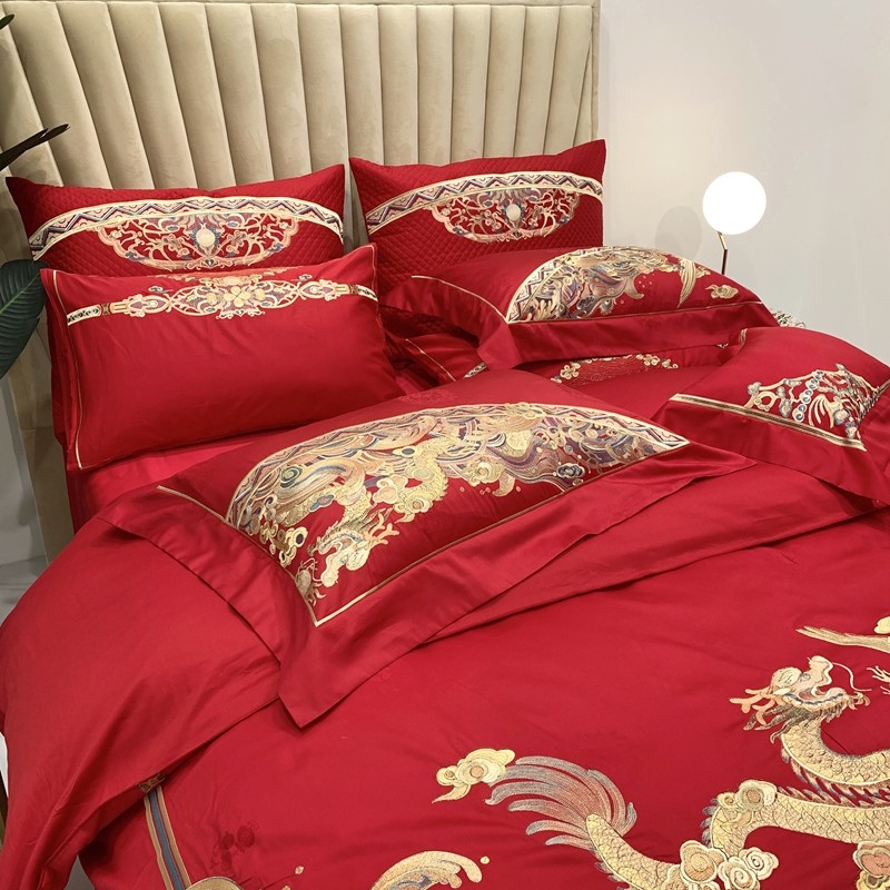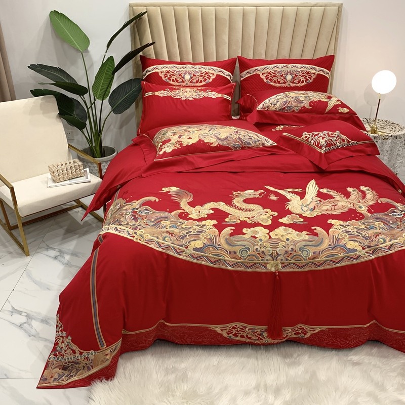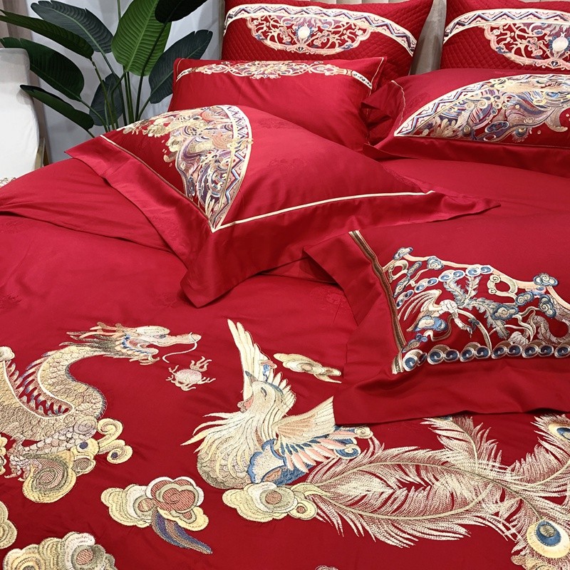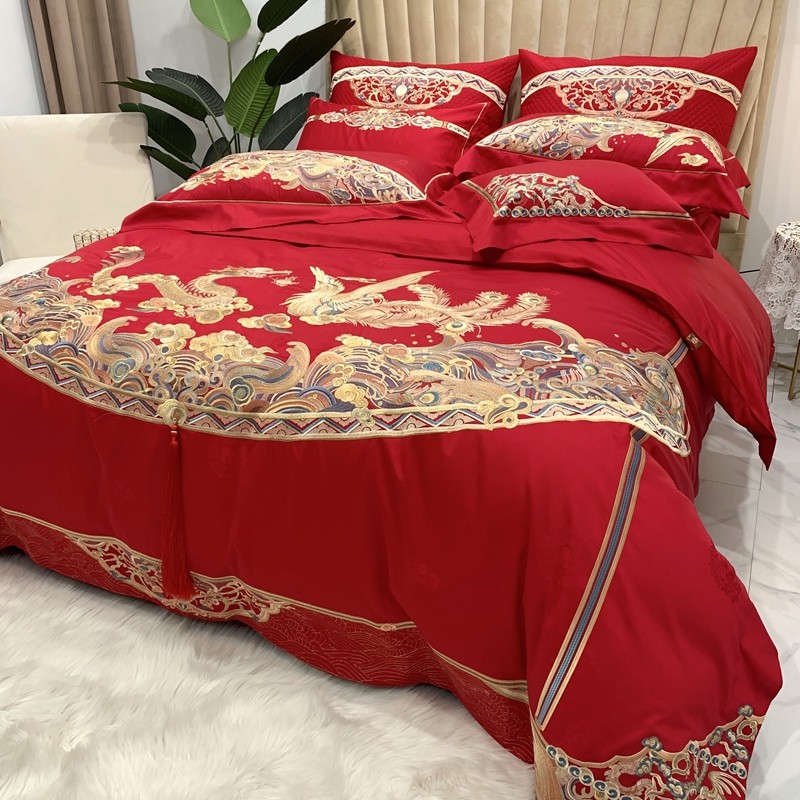 馨蕊家居 2021新款100支高端婚庆四件套 龙跃凤鸣