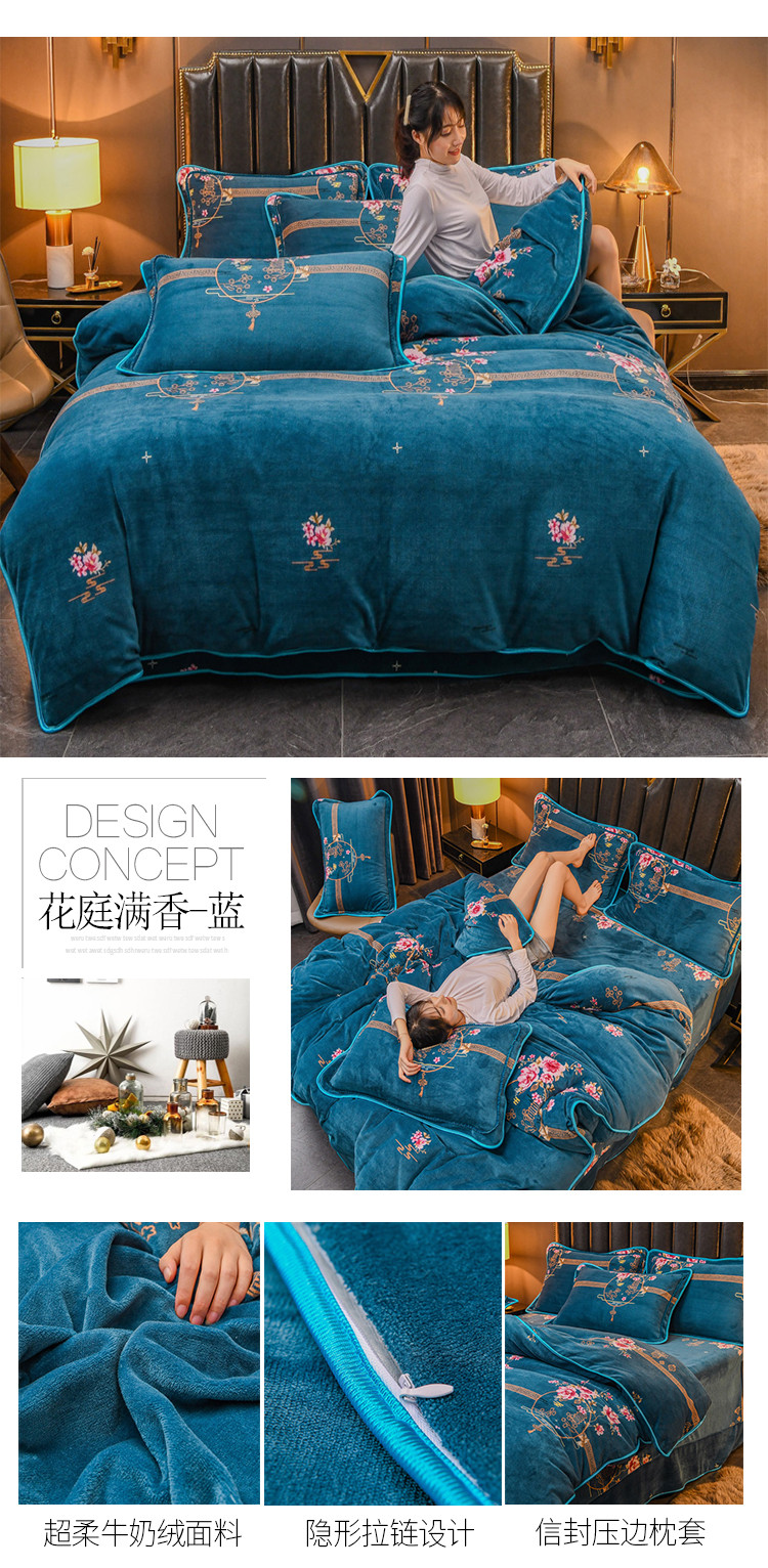 (总)澳洲羽 2024新款纯色牛奶绒绣花四件套,爱马橙,豆沙色,富贵紫,吉黄色,咖色,墨绿色,牛油果绿,清水蓝