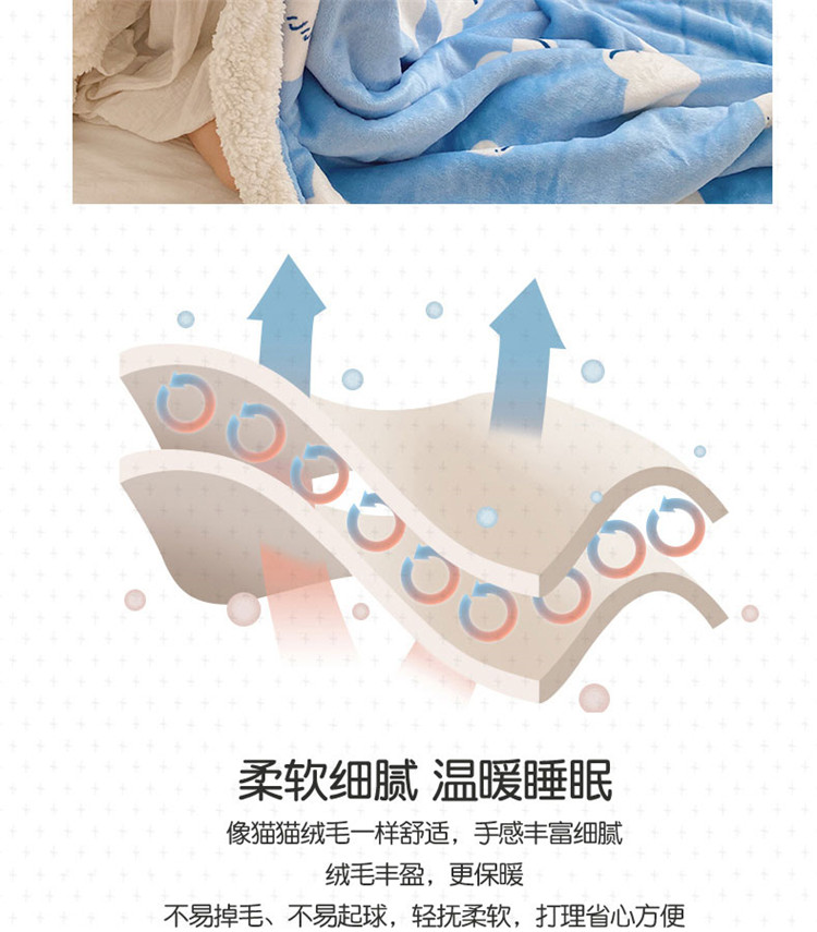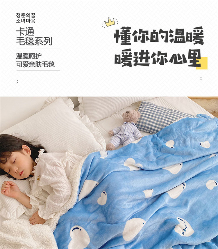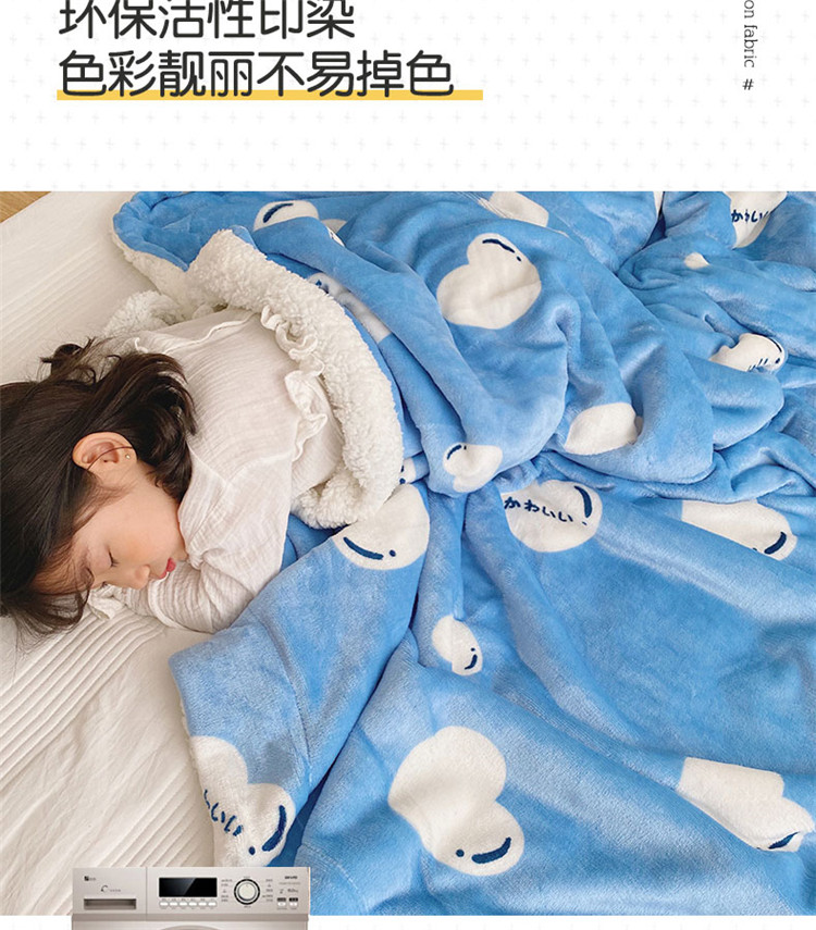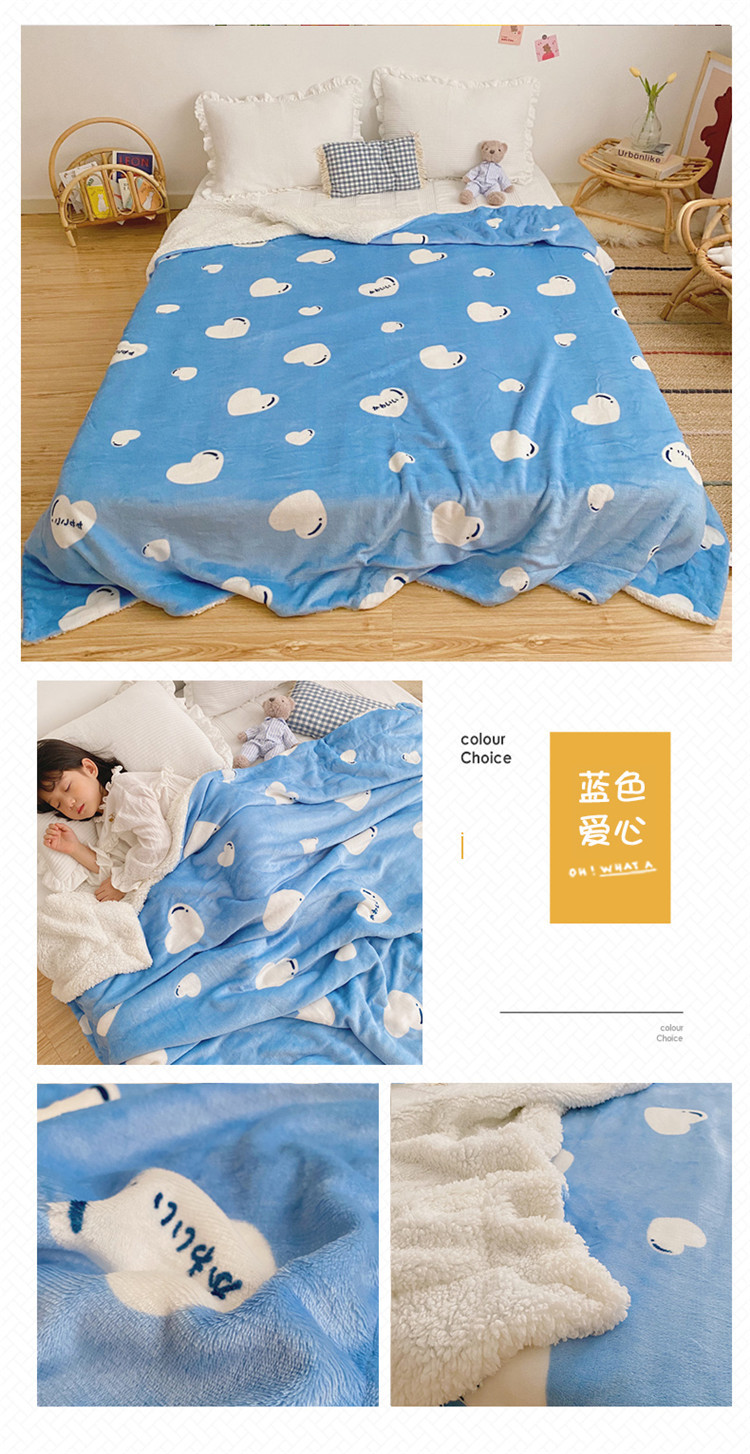 川悦生活2020新款羊羔绒毯子卡通亲肤牛奶绒毛毯蓝色爱心