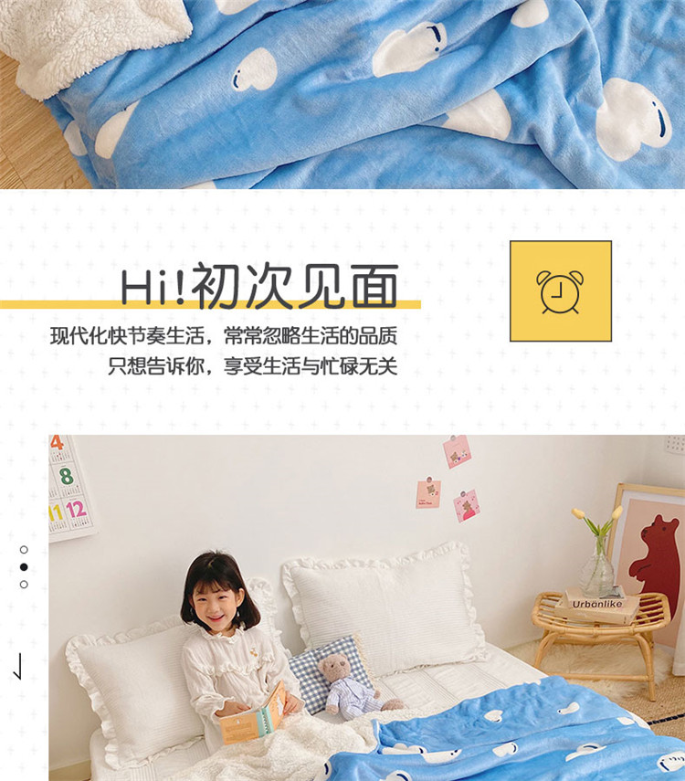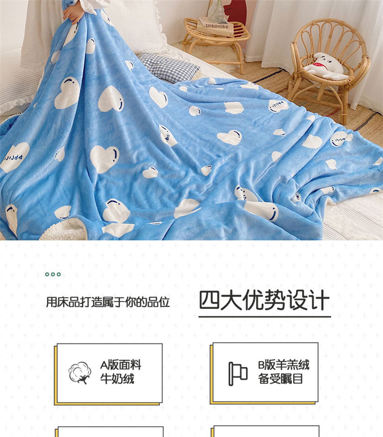 商品名称:川悦生活2020新款羊羔绒毯子卡通亲肤牛奶绒毛毯蓝色爱心