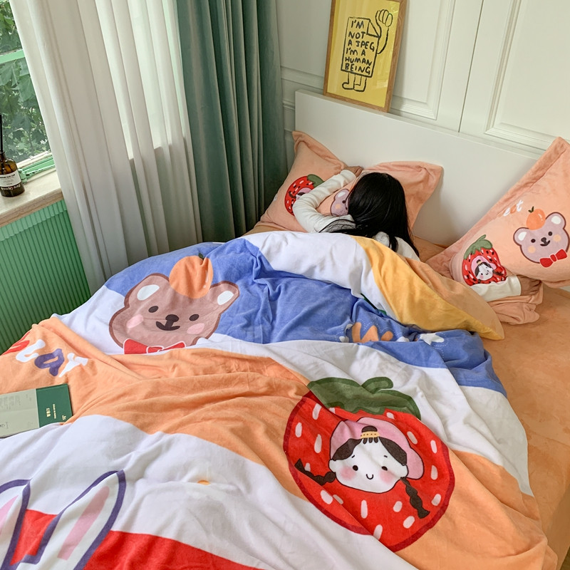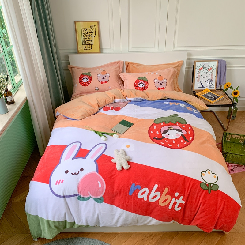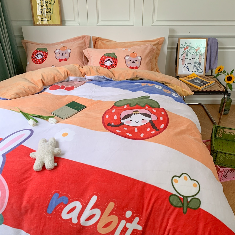 商品名称:柚子 2020新款牛奶绒印花大版四件套 彩虹世界